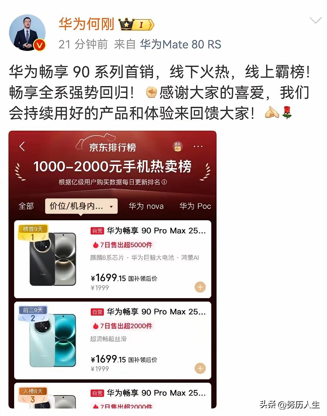 4月2日傍晚,四川成都所有售卖华为手机的店都打出了“华为畅享90Pro max首单售罄”的战报!说明了这款超高性价比的手机真的卖爆了! 线下手机销售的热度,从来都不是单纯靠宣传就能带动的,更多是普通消费者用真实需求做出的选择。在如今的数码消费市场里,线上购机虽然便捷,但线下门店依旧有着不可替代的优势,尤其是在成都这样的新一线城市,线下数码商圈成熟,市民更愿意到实体店体验真机后再做决定。很多中老年用户对手机操作不够熟悉,到店购买可以直接让工作人员讲解功能,遇到问题也能就近寻求帮助,这种贴心的服务是线上渠道难以比拟的,这也是线下门店能保持稳定客流的重要原因。 华为畅享系列一直以来的产品定位,就是面向大众消费群体,主打实用、耐用、操作简单,没有过度追求高端旗舰的配置,而是把重心放在续航、屏幕、系统流畅度这些日常使用频率最高的功能上。对于学生群体而言,这类机型价格亲民,能满足学习、社交、娱乐的基础需求,不会造成经济压力。对于上班族和务工人员来说,手机主要用于通讯、移动支付、简单办公,稳定耐用比花哨的功能更重要,恰好契合这类人群的核心诉求。也正是因为精准贴合了大多数普通人的使用需求,该系列机型在线下市场一直拥有稳定的用户基础。 成都的数码消费市场活跃度高,各类手机门店分布广泛,新机首销期间出现集中购机的情况,符合正常的市场规律。不少消费者会特意赶在首销期到店,一方面是想第一时间用上新机,另一方面也是看重首销期间门店的配套服务,能更全面地了解产品细节。所谓的首单售罄,是单店首批现货的销售结果,代表的是线下终端的即时销售情况,并非整个市场的库存清零,这也是数码行业常见的销售反馈形式,没必要过度解读为刻意的营销造势。 网络上总有两种极端的声音,要么一味吹捧热销机型,认为只要销量高就无可挑剔,要么全盘否定,觉得所有线下售罄都是营销套路,这两种看法都不够客观。一款产品能获得市场认可,核心还是产品力与消费需求相匹配,而不是单纯的品牌情怀。消费者在选购手机时,大多会结合自身预算和使用习惯,不会轻易被舆论左右。中老年用户看重长续航和简易操作,学生看重性价比和存储空间,普通上班族看重稳定性和售后保障,这些真实的民生需求,才是推动线下销量走高的根本动力。 支持国产数码产品是值得肯定的消费态度,但理性消费才是更值得提倡的观念。市面上的手机品类繁多,不同价位、不同定位的机型对应不同的使用人群,没有绝对的好坏之分,只有适不适合自己。盲目跟风抢购热销机型,或是为了所谓的品牌情怀超出预算消费,都不是合理的选择。真正成熟的消费观,是认清自身需求,在预算范围内选择体验最合适的产品,不被外界声音裹挟,不被营销氛围带动。 国产数码行业的发展,离不开大众消费者的支持,更离不开产品本身的持续优化。品牌方只有扎根大众需求,打磨基础使用体验,制定合理的定价策略,完善线下售后体系,才能真正获得消费者的长期认可。线下门店的销售战报,不仅是产品销量的体现,更是市场对实用型民生产品的肯定。在消费日趋理性的当下,只有贴合普通人生活需求的产品,才能在激烈的市场竞争中站稳脚跟,也才能让国产数码产品获得更长久的发展空间。 各位读者你们怎么看?欢迎在评论区讨论。