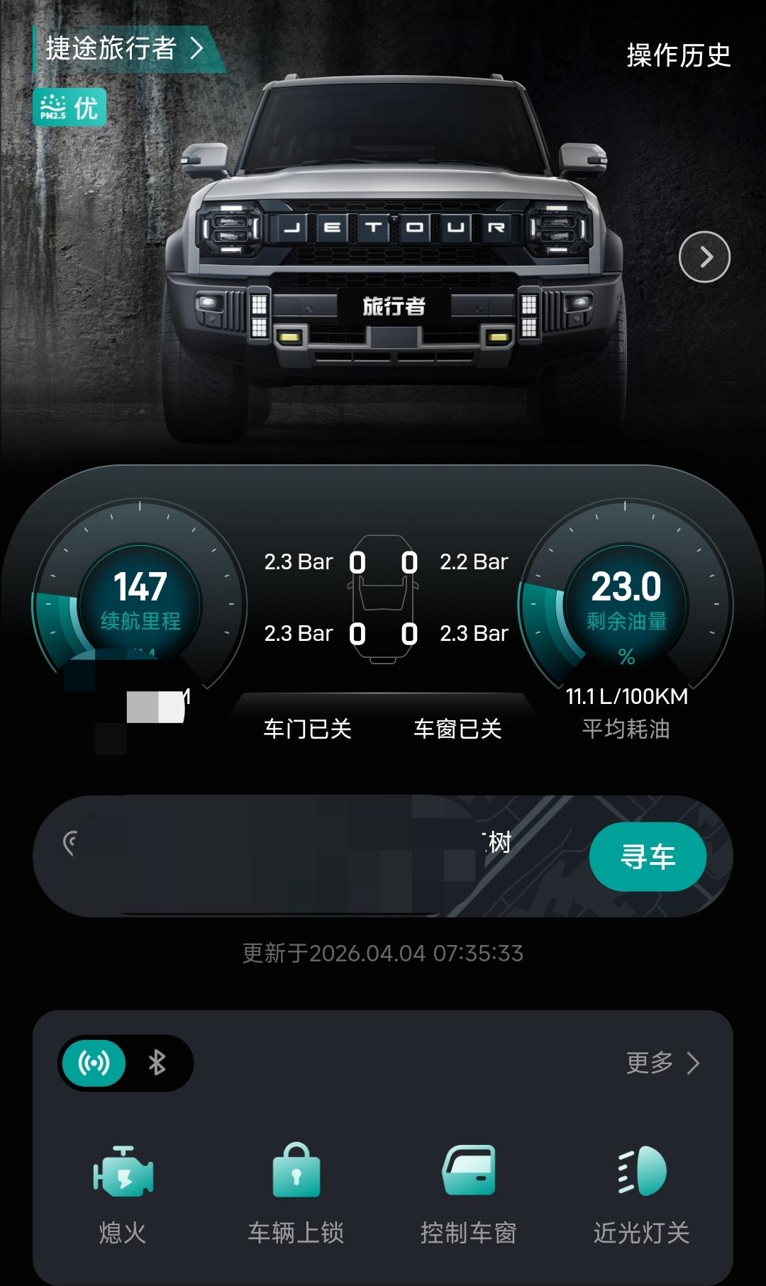 1、车型:捷途旅行者穿越版 2、路况:城市郊区路段(不堵车,就是红绿灯多) 3、路程:每次都是短路程7公里左右 4、油耗:表显9.7,APP一直是11.1 5、使用:每次都是深踩油门,可能更费油了,路程比较短,红绿灯多也导致油耗高 6、感受:开春了,但还是有点冷,每次都是提前先用APP远程启动,打开空调25度,座椅加热,方向盘加热,上车后很舒服。路口启动也很顺畅,动力很足,超车顺畅。【来自懂车帝车友圈】