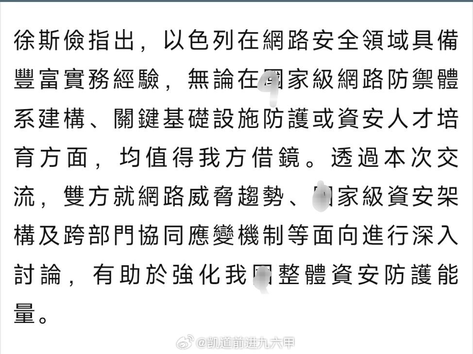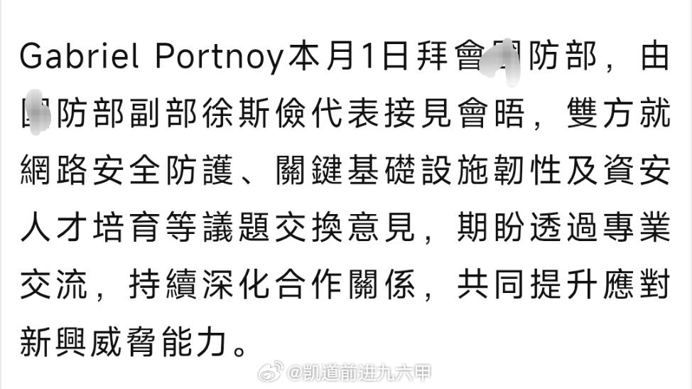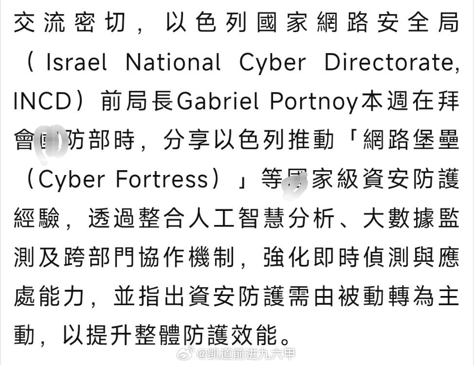 以色列国家网络安全局前局长Gabriel Portnoy 4月1日窜访台湾,与台伪井防部副部长徐斯俭会面,就网络安全防护、关键基础设施韧性、「資安人才」培育等议题交换经验,并指出「資安防護需由被動轉為主動」。
