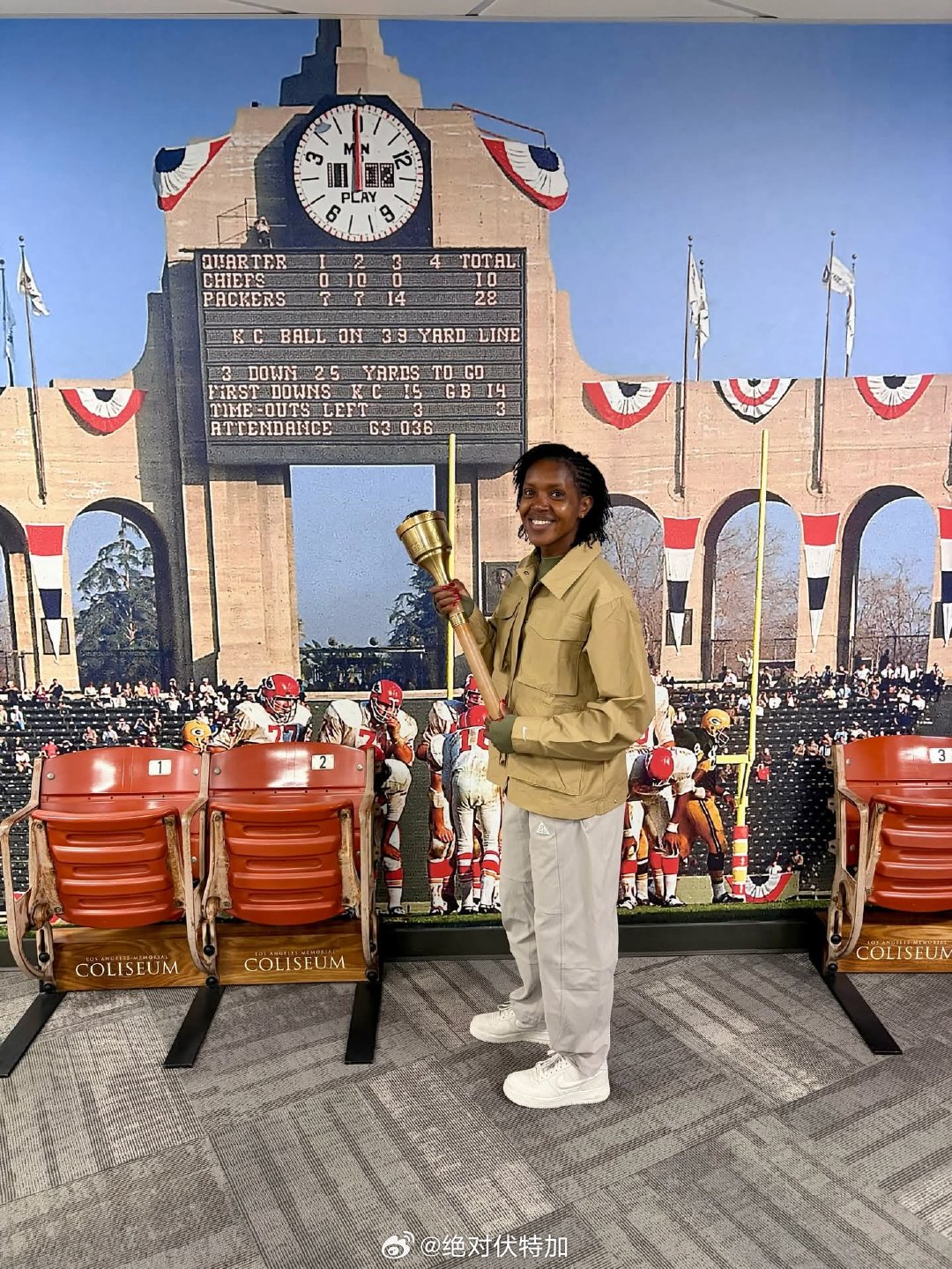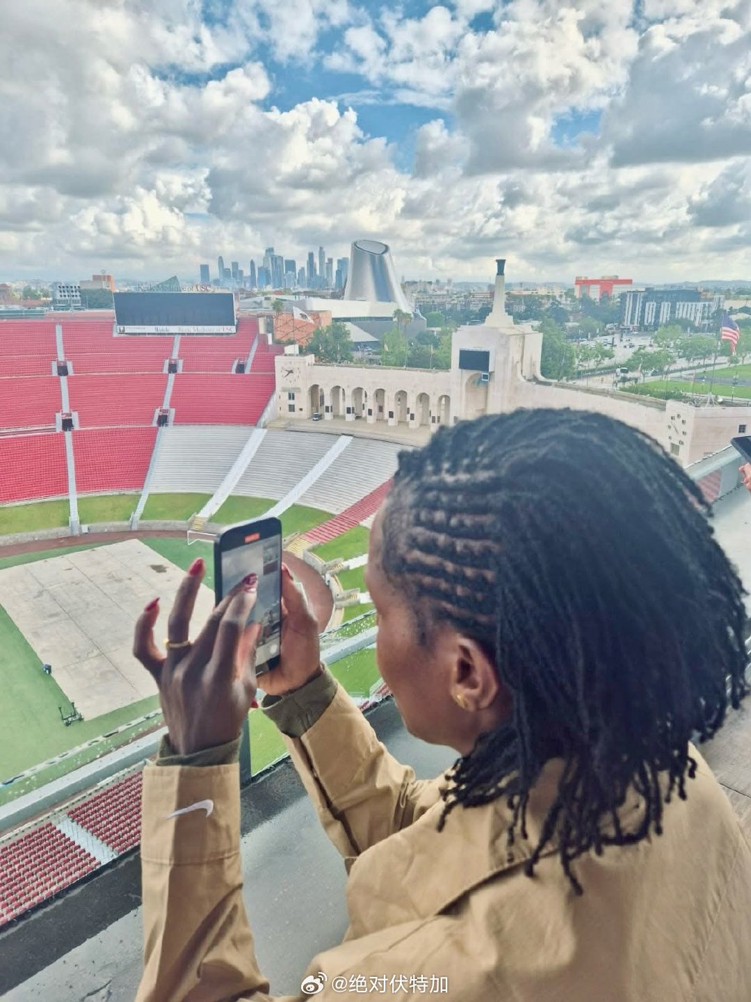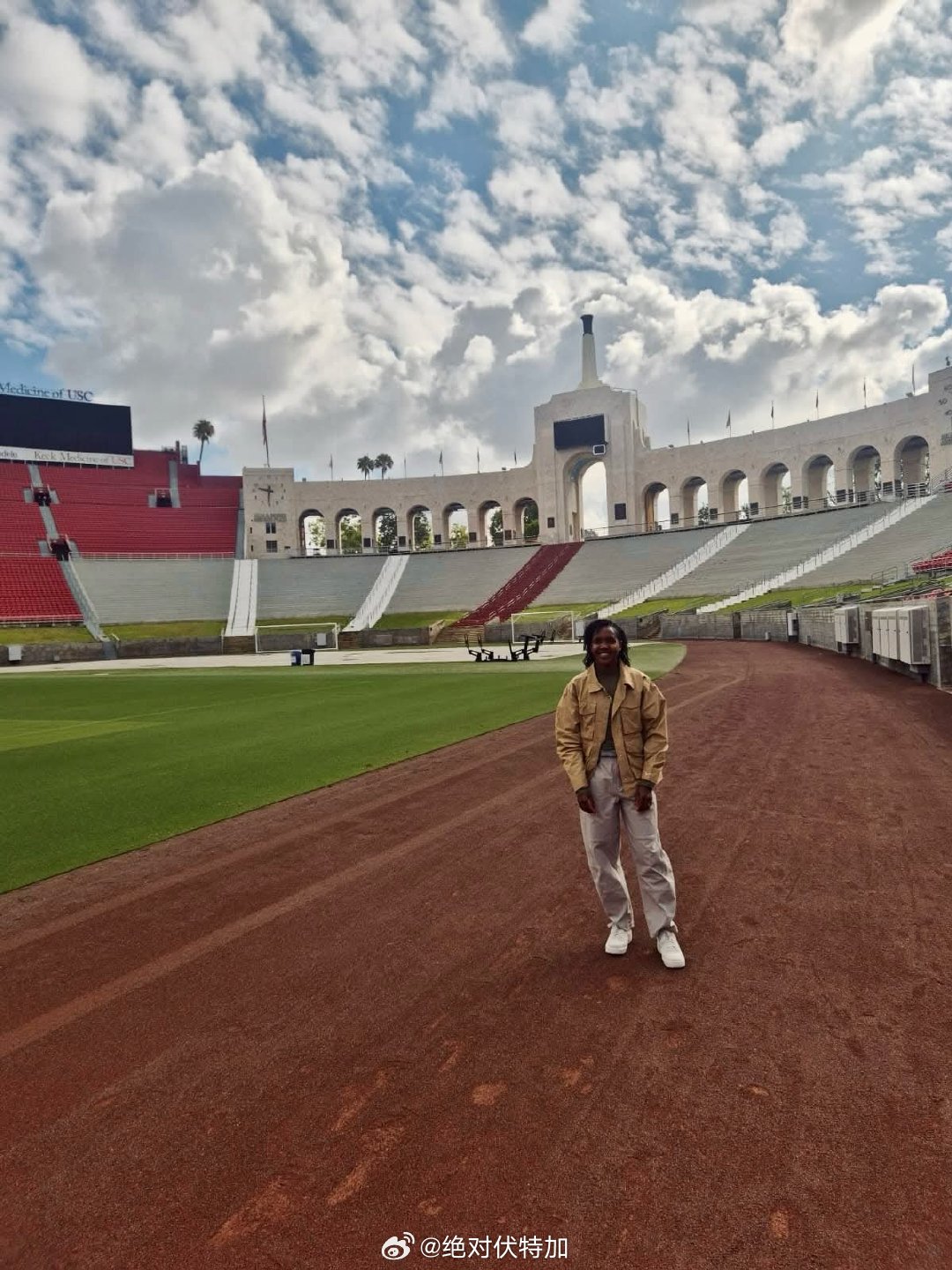 Faith Kipyegon 吉普耶根来到洛杉矶1984年奥运会的体育场。吉普耶