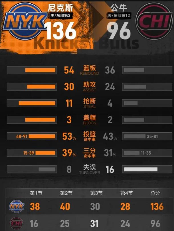 嘿!这场球看完,我没笑出来,只觉得一股悲凉往嗓子眼儿冒。 您想啊,2026年4月4号,麦迪逊广场花园,东部第三的尼克斯打公牛,半场比分78比41,领先37分!这不是比赛,这是公开处刑。 OG阿奴诺比,31分8篮板,三分10中7,第二节连着三个三分,那手感烫得能当场点烟。锡伯杜今年68岁,1958年生人,坐在场边那表情比输球的多诺万还复杂——自己亲手带的尼克斯,虐的却是曾经缔造62胜辉煌的老东家。那眼神里没有狂喜,全是一个老派教练对篮球尊严被践踏的不忍。 布伦森更逗,17分10助攻,正负值全场最高,打了一节半就基本在板凳上嗑瓜子,这哪是竞技,这是带薪休假。最离谱的是米切尔·罗宾逊,7投7中,17分11篮板,一个纯蓝领吃饼吃出奥拉朱旺的命中率。公牛内线防守?纸糊的!吉迪6投0中,正负值-38,多诺万今年60岁,2025年7月刚签的多年续约合同,站在场边看着分差奔47分去,那表情跟生吞了黄连似的。 说白了,公牛这不是重建,这是自暴自弃摆烂摆出了包浆。塞克斯顿拿19分,全在垃圾时间刷的,这种输法丢的是球队的魂。尼克斯缺了唐斯还能12人轮换全得分,靠的是体系是职业尊严。重建可以输,但不能不要脸面。公牛得先学会站着死,才有资格谈重生,否则就算抽到状元签,也养不出冠军相。