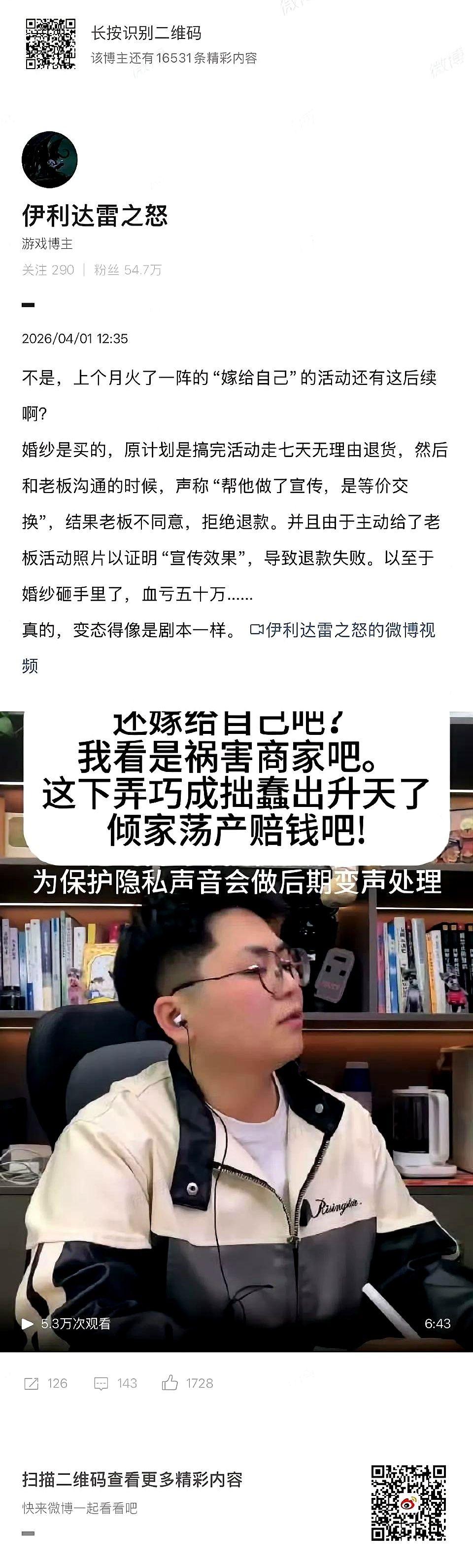 有群姐们搞了个大场面,叫“嫁给自己”。 第一步,走进婚纱店,专挑最贵的,一口气刷了50万。她们的算盘打得噼啪响:等仪式一搞完,转头就点“七天无理由退货”。 仪式当天,草坪、鲜花、香槟塔,一个都不少。她们穿着崭新的婚纱,挽着自己的胳膊,对着镜头宣誓要爱自己一辈子。手机闪光灯亮成一片,每一张照片似乎都在大声宣告:“男人算什么,我自己就是全世界。” 朋友圈发完了,点赞也收麻了。 这时候,她们做了一个让所有人都看不懂的操作。她们把现场最美的几张照片,打包发给了婚纱店老板,还特地配了句:“老板,你看你家衣服多上镜,宣传效果好吧?” 手机那头沉默了很久。 老板没回一个字,就发来一张截图,是网店退货政策里的一行小字,上面写着“商品需不影响二次销售”。 空气瞬间安静了。 那50万的婚纱,就这么静静地挂回了衣柜里,吊牌还在,但“全新”两个字,已经被草坪上的泥点和香槟的印子划掉了。朋友圈里的浪漫宣言还在,但银行发来的账单提醒,可不会陪她们演戏。 所以说,这到底是嫁给了独立,还是嫁给了那张50万的发票?