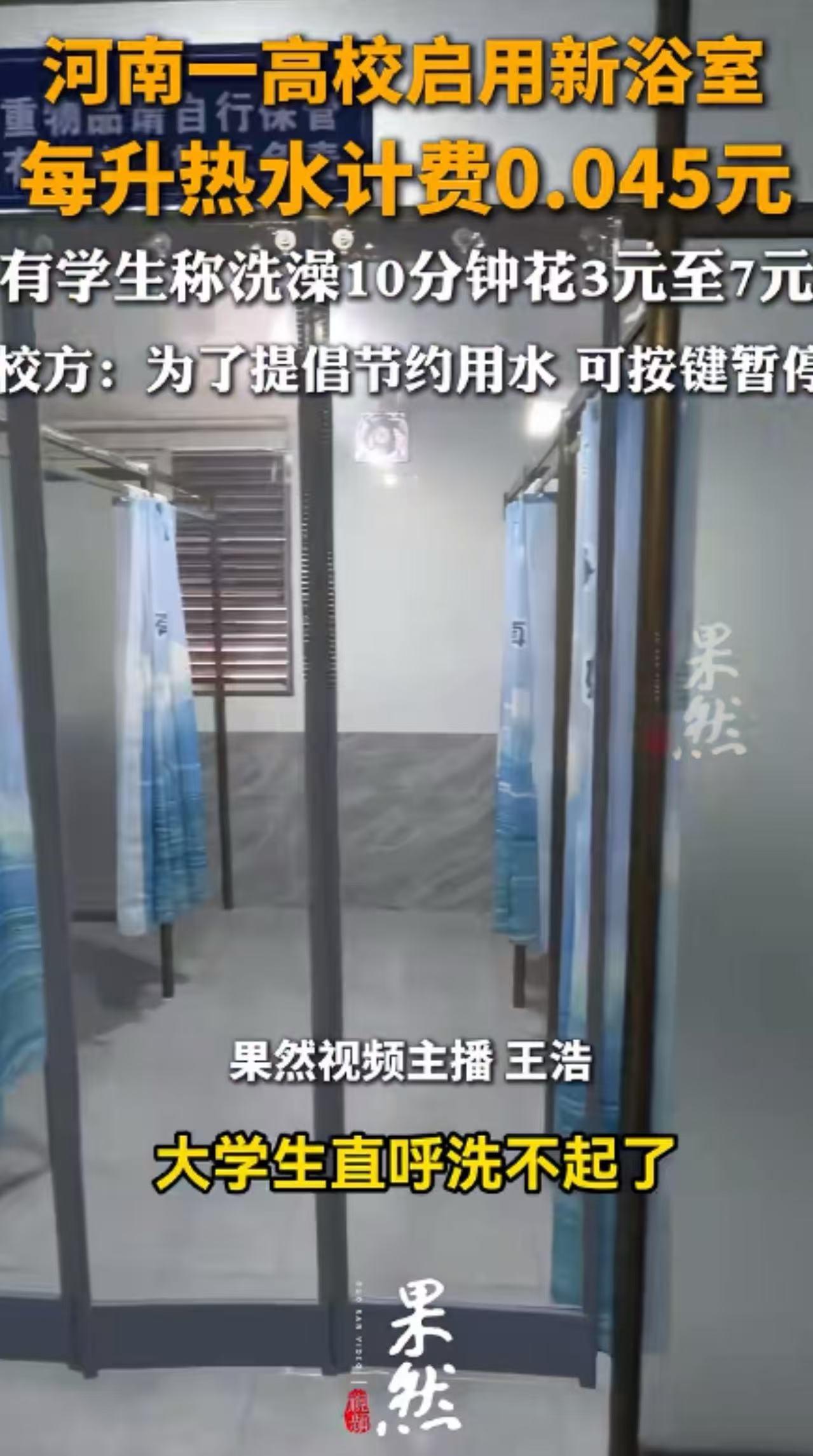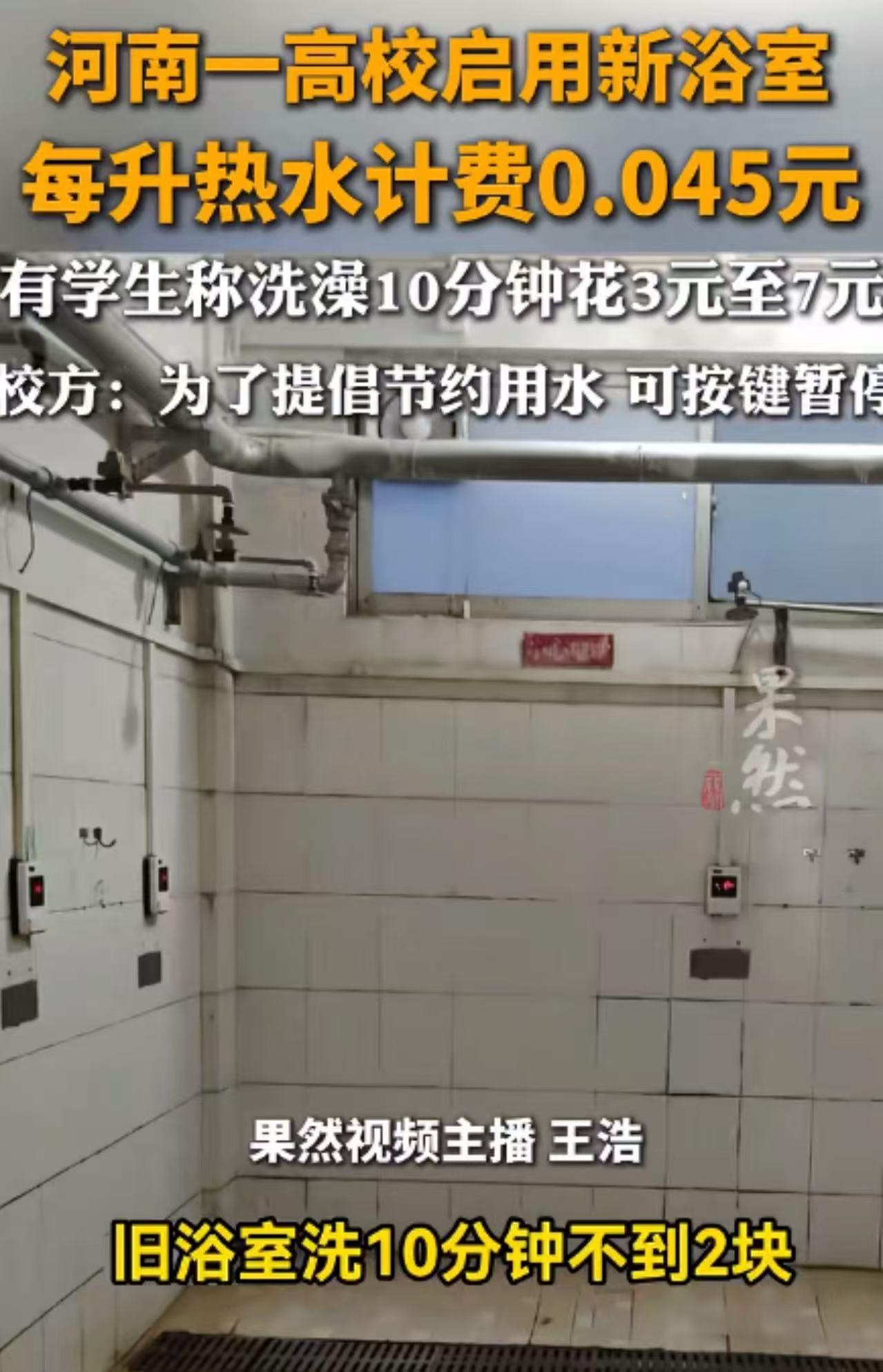 “洗个澡10分钟要花7块钱,大学生直呼洗不起了!”河南一大学新浴室按流量计费,学生实测:洗10分钟3至7块钱,如果每天洗澡,一个月就要200来块钱!学校后勤回应:为提倡节约!网友:这哪是洗澡,这是在“烧钱”! 河南农业大学新改造的浴室,让学生们“心凉”到了极点。 以前在旧浴室,洗个澡不到两块钱,虽然设施旧了点,但好歹能冲凉。 可新浴室一启用,画风突变:按流量计费,每升热水0.045元。 有学生不信邪,特意实测了一把。结果让人大跌眼镜:随便冲冲,10分钟就要3到7块钱! 这是什么概念?如果天天洗,一个月光洗澡费就要200多块!对于没有收入来源的大学生来说,这简直是一笔巨款。 更让人崩溃的是细节。更衣区竟然没有插座!学生们自带的吹风机根本用不了,只能用学校的公共设备。 虽然学校说试运营期间吹风机免费,但谁敢保证以后不收费? 学生们吐槽:“如果是夏天,几乎天天洗澡!这谁顶得住啊?” 面对质疑,学校后勤的回应很官方:“这是为了提倡节约用水,如果觉得贵,洗澡的时候可以按暂停键啊。” 这话一出,评论区直接炸了。 有人直接开怼:“句句为你,刀刀见钱!学校眼里缺的从来不是大学生,而是大学生口袋里的学费。把学生当成行走的人民币,吃相太难看!” 有人嘲讽:“冬天洗澡还要按暂停键?这领导真是个人才!你在家里洗澡也是洗一下、关一下、再洗一下吗?这不叫节约,这叫折腾!” 还有人看透了本质:“现在的学校眼里只有钱!喝自来水都要钱,上厕所都要钱,现在连洗澡都要按流量计费。这是办教育还是开洗浴中心啊?” 更有网友一针见血:“别找什么‘提倡节约’的借口,这就是为了赚钱!” 我想说的是,学校浴室改造,本意是提升学生体验,结果却变成了“提升账单金额”。 提倡节约用水没错,但不能脱离实际。让学生一边洗澡一边盯着水表转,洗两分钟就要按一下暂停,这种“抠门式节约”,不仅体验极差,更是对学生尊严的消耗。 如果真为了节约,为什么不从设备升级入手?比如安装恒温混水阀、节水型花洒,而不是把成本转嫁给学生,让他们在“洗得舒服”和“洗得便宜”之间做选择题。 更让人寒心的是学校的态度。面对学生的吐槽,不是反思计费方式是否合理,而是轻描淡写地说“可以按暂停键”。这种回应,透着一股高高在上的冷漠。 大学是教书育人的地方,不是生意场。 当学生连洗澡都要精打细算,当“洗不起澡”成为校园热词,这所学校的教育温度,就已经降到了冰点。 别再用“为你好”来绑架学生,真正的节约,是让学生无感地节约,而不是让他们心疼地节约。 毕竟,教育的本质,是温暖人心,而不是算计钱包。