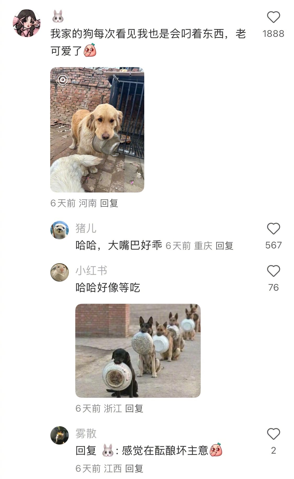 小狗每次见我嘴里总叼着东西
