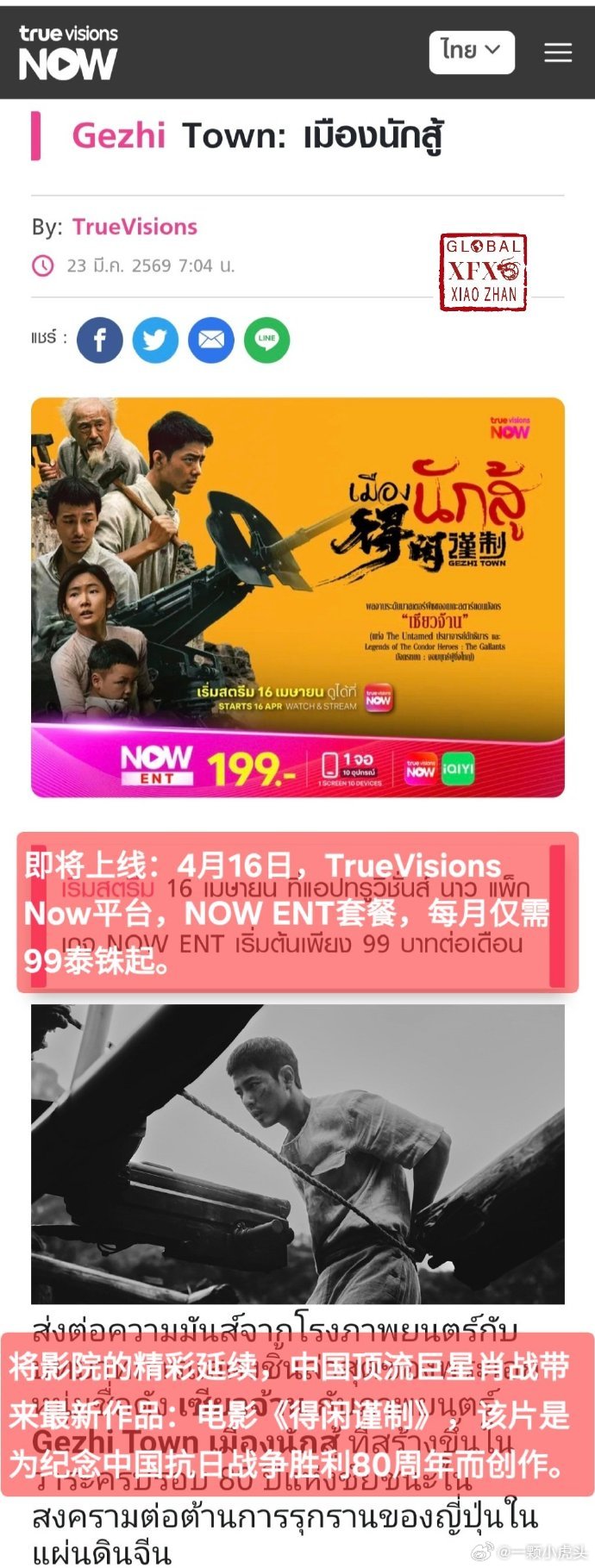 得闲谨制海外喜讯,《得闲谨制》泰国上映口碑爆棚,4月16日即将上线TrueVisions Now!「将影院的精彩延续,中国顶流巨星肖战带来最新作品:电影《得闲谨制》」TrueVisions Now是泰国最大的本土OTT流媒体平台。《得闲谨制》将触及更多的泰国观众,好电影就值得被全世界看到!