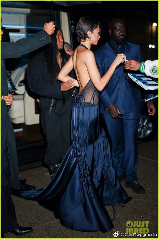 赞达亚大尺度透视装亮相《戏剧》庆功宴为继续庆祝新片《戏剧》的首映,Zendaya于4月2日晚在纽约与造型师Law Roach和母亲一同出席庆功宴。 她身穿一件来自Di Petsa 2026秋冬系列的高级定制透视礼服,深蓝色面料与她当晚红毯造型中的“一点蓝”新娘元素相呼应。礼服采用深V挂脖领口,精细的细节设计延伸至及地缎面鱼尾裙摆。看起来美极了。 《戏剧》已于4月3日正式在北美上映。
