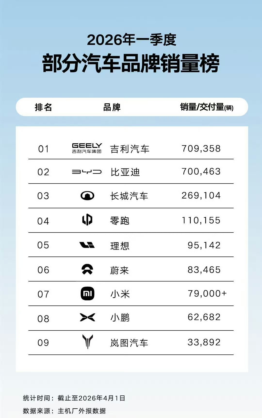 2025年的比亚迪已经是全球新能源销冠,在这个位置上,再单纯追求销量已经意义不大了。 王传福心里很清楚,现在的市场,光靠“价格屠夫”的名号是守不住江山的,要想从“大”变“强”,从“销量冠军”变成“技术教父”,必须得从技术鱼池里拿出点让对手绝望的黑科技。 闪充和二刀已经发布了,接下来就是dmi6.0和天神之眼5.0系统了。 一季度吉利的销量已经超越比亚迪了,那么问题来了,比亚迪今年能不能保住新能源一哥地位呢?