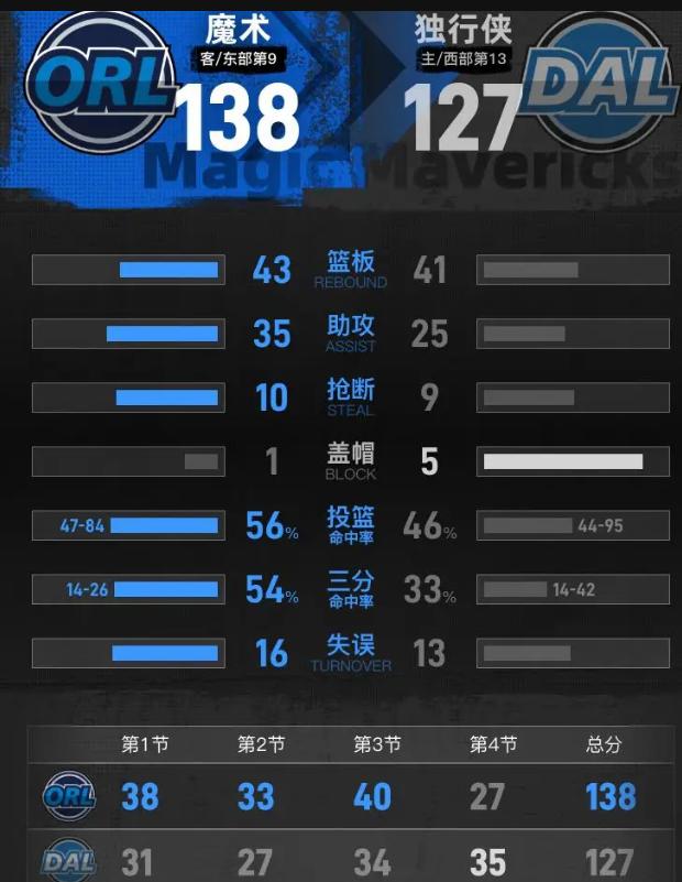 你说这球看得憋屈不憋屈?弗拉格砍了51分,创下NBA史上最年轻50+纪录,结果独行侠主场还是127-138被魔术干翻,14连败创队史耻辱。 这事儿邪门吧? 您猜怎么着?魔术那帮人今儿个三分线外开得跟挂似的——全场54%的三分命中率,卡特、贝恩、萨格斯投得比训练还轻松。 首节38-31,半场71-58,三节直接108-92拉开到27分。六人得分上双,35次助攻打得是丝滑的团队篮球。反观独行侠,除了弗拉格51分6篮板硬撑,剩下就是威廉姆斯23分、汤普森18分,其他人跟隐身了似的。 更扎心的是第四节。基德和马绍尔连着被驱逐,弗拉格彻底急了眼,单节24分一个人把27分分差追到只剩8分。那画面就像高中生扛着炸药包冲大学校队,悲壮是真悲壮,可篮球终究是五个人的活儿。 要我说,魔术赢在当下,卡特28分拿得稳稳当当;但弗拉格这51分,是独行侠未来三年的底气。-team basketball很美,但一个人对抗全世界的样子,更动人。