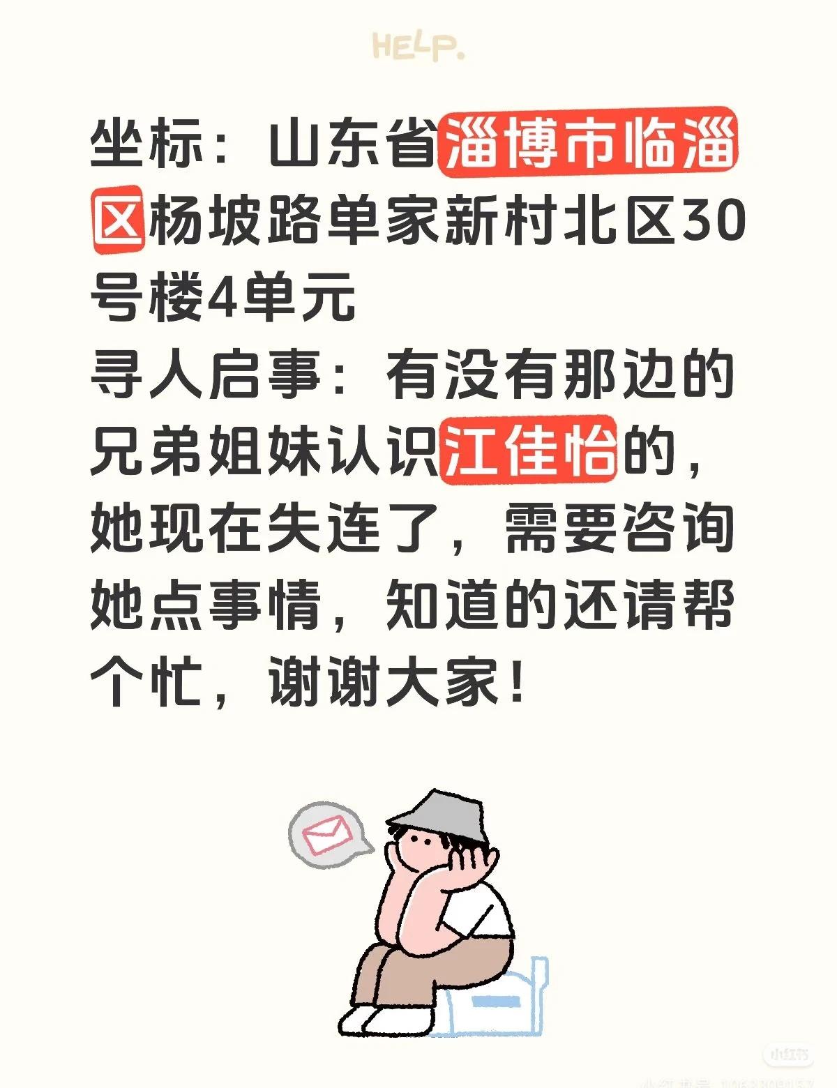 寻人寻人 山东淄博有没有人认识临淄区单家新村北区一个叫江佳怡的人,现在人失踪了,联系不上了山东 淄博 寻人 临淄单家新村北区