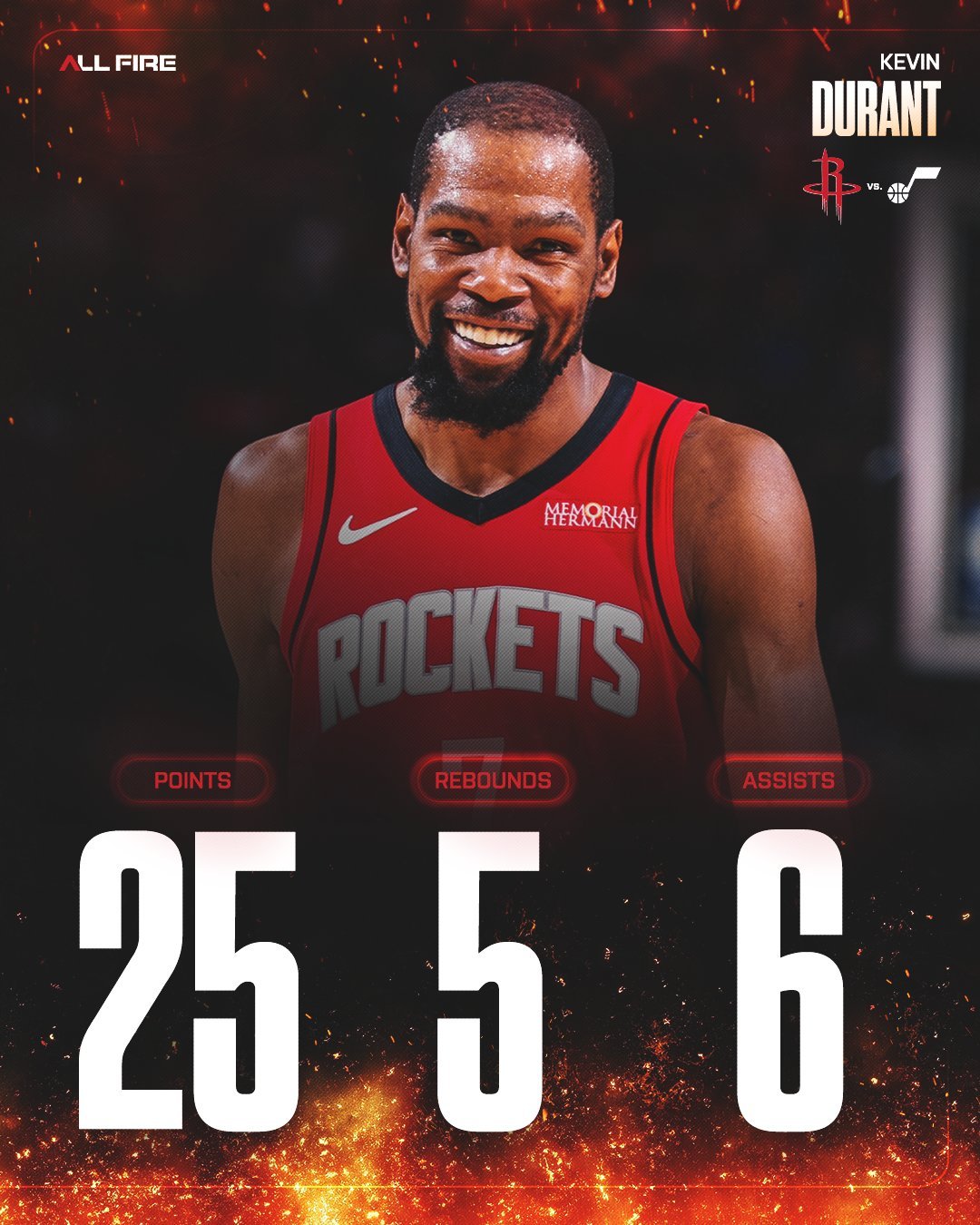 杜兰特赛后采访谈到火箭队的成长:“在赛季后半段,我们全队进行了几次讨论,明确了彼此以及教练组所需。我们正努力执行这些要求。我们专注于每一回合、每一次攻防中做好自己的工作。当你有意识地思考这一点时,执行起来就会容易一些。”