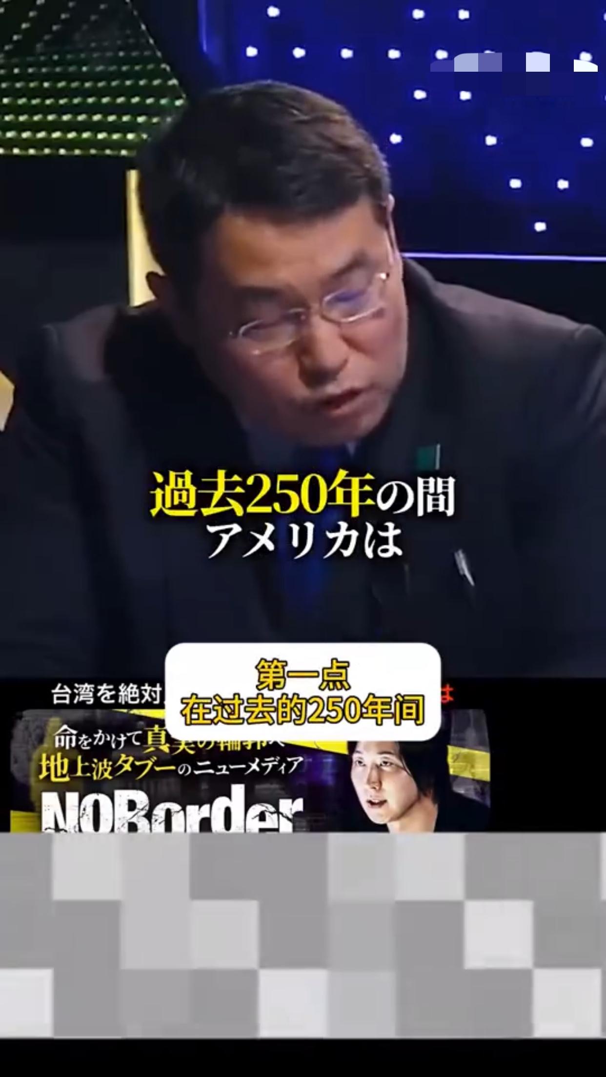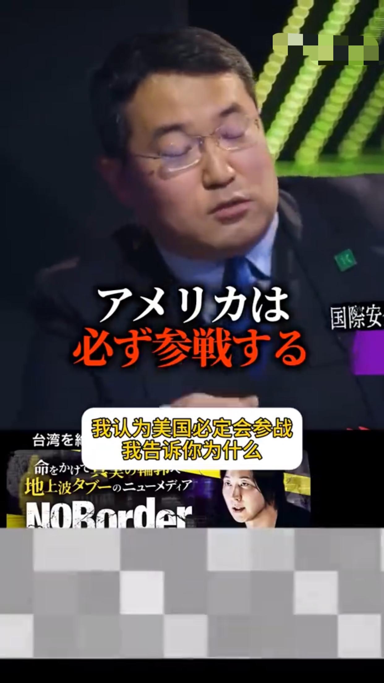 有一位日本专家在节目中表示:“我们不能背叛成为美国的敌人,我认为美国必定会参战介入台海,因为在过去的250年里,美国没有让任何一个竞争国存活下来,日本如此,德国如此,苏联也如此,所以它成为唯一的超级大国,因此,中国作为潜在取代美国的力量存在,美国不可能放任台湾不管,因为台湾的位置极其重要,而如此重要的绝妙王牌,美国绝不可能放弃那里。”