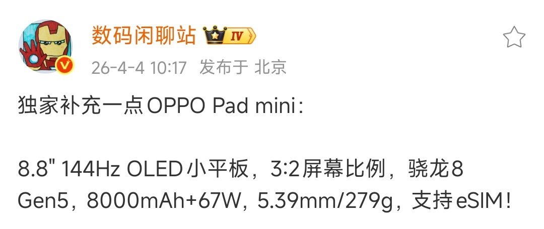 数码闲聊站 OPPO Pad mini 双王炸:骁龙8 Gen5 + eSIM!