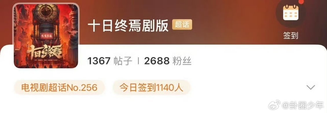 肖战十日终焉剧版超话十日终焉剧版超话超话开启,热度飙升,肖战领衔十日终焉,演技与题材双惊喜,坐等开播不见不散。