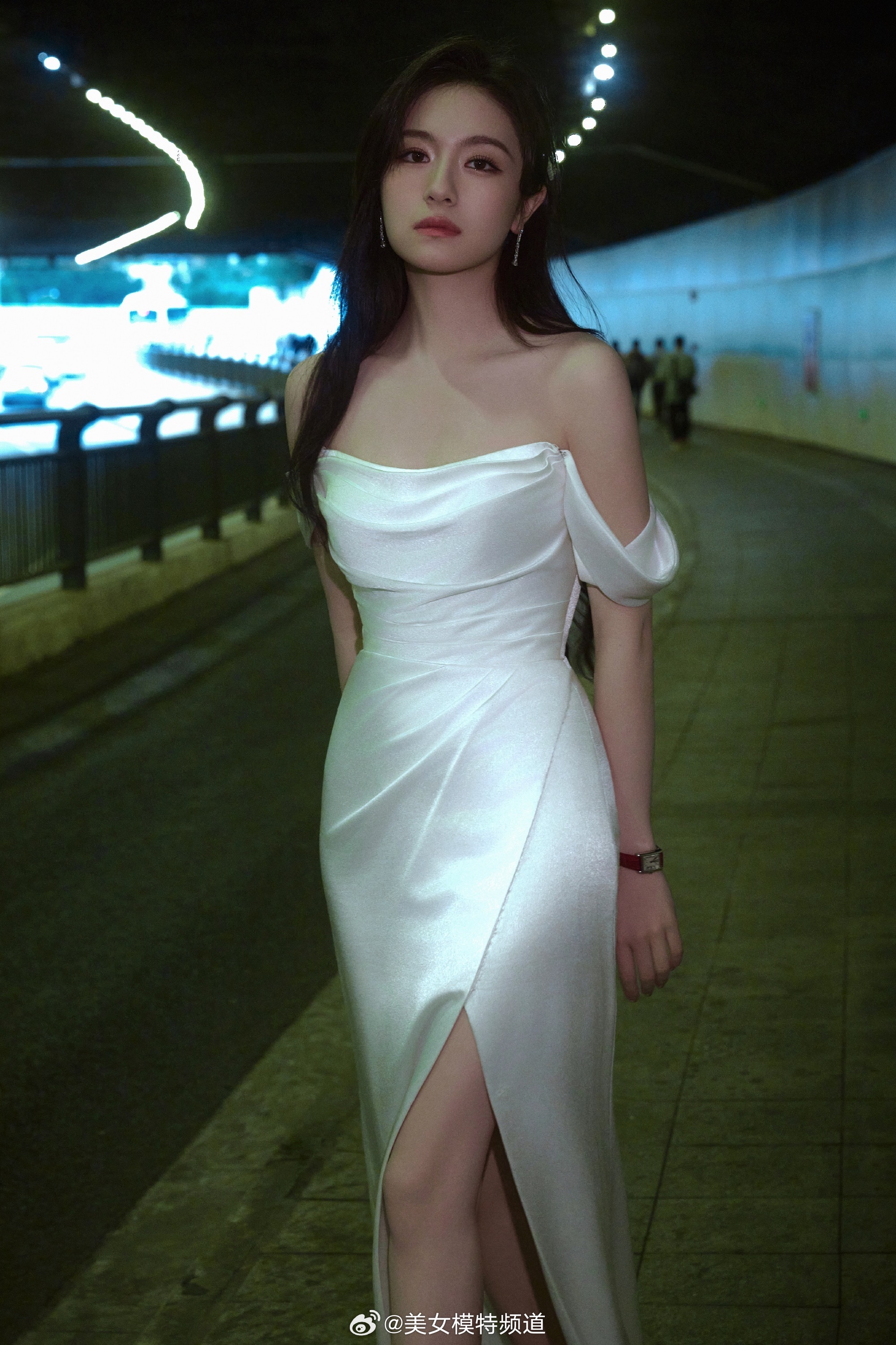 张艺凡白裙开衩到腰,长腿直接封神!细跟高跟鞋衬得腿又直又长,连光影都在为这双美