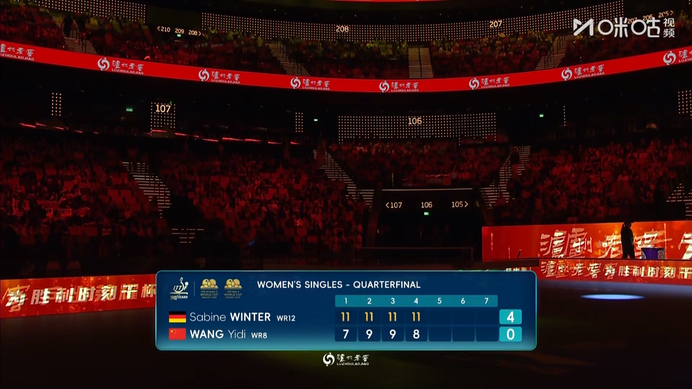 王艺迪0比4温特 (7-11,9-11,9-11,8-11)止步澳门世界杯202