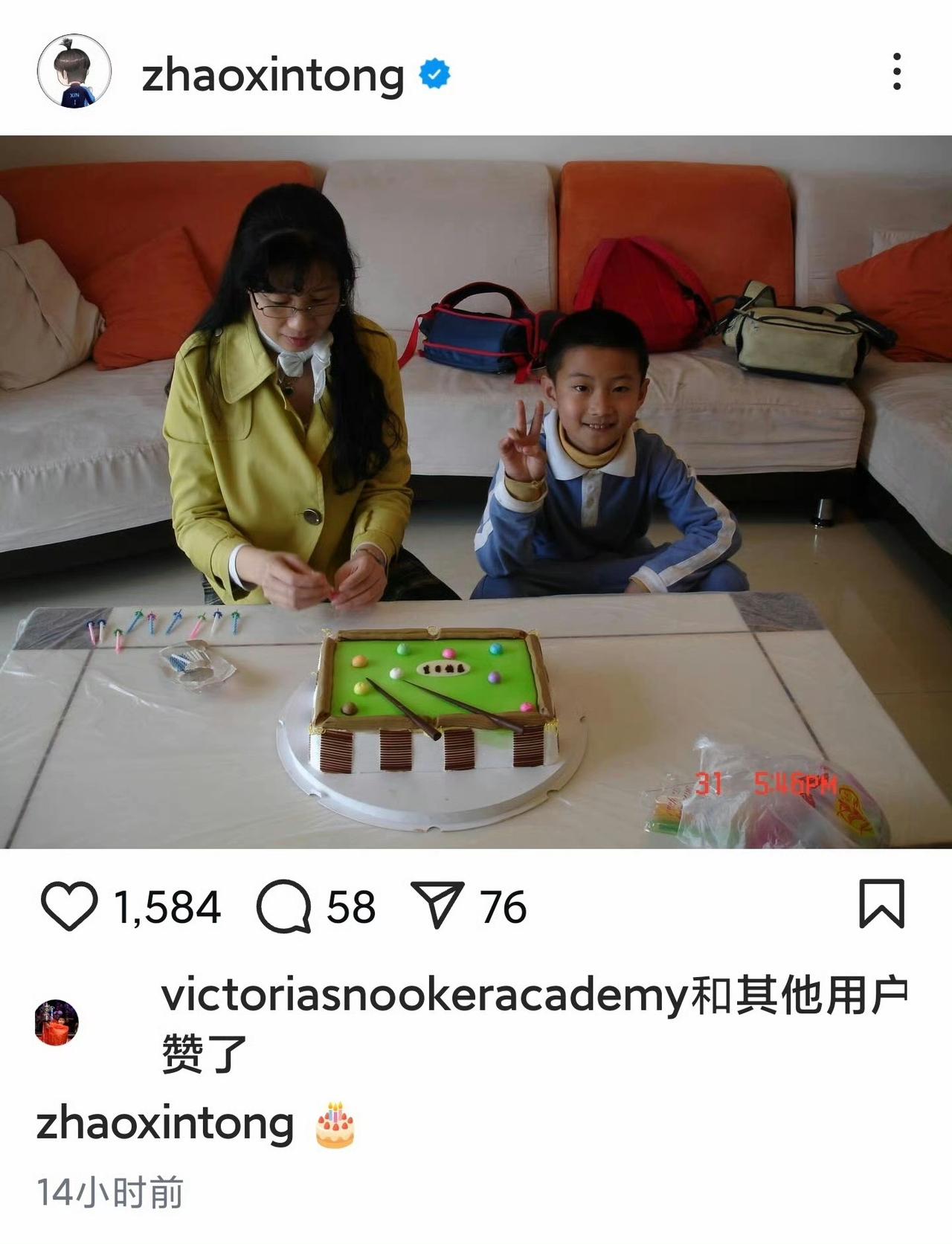 赵心童在自己的29岁生日当天晒出童年照。图二大概是2005年8岁生日拍的。 图三是刚刚拿起球杆练球的年龄。 图四是第一次跟马威打球。
