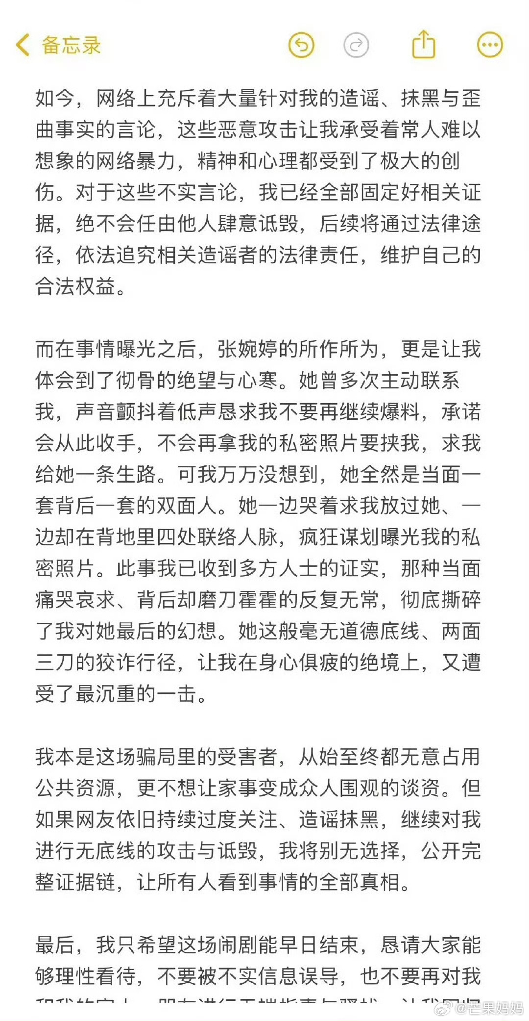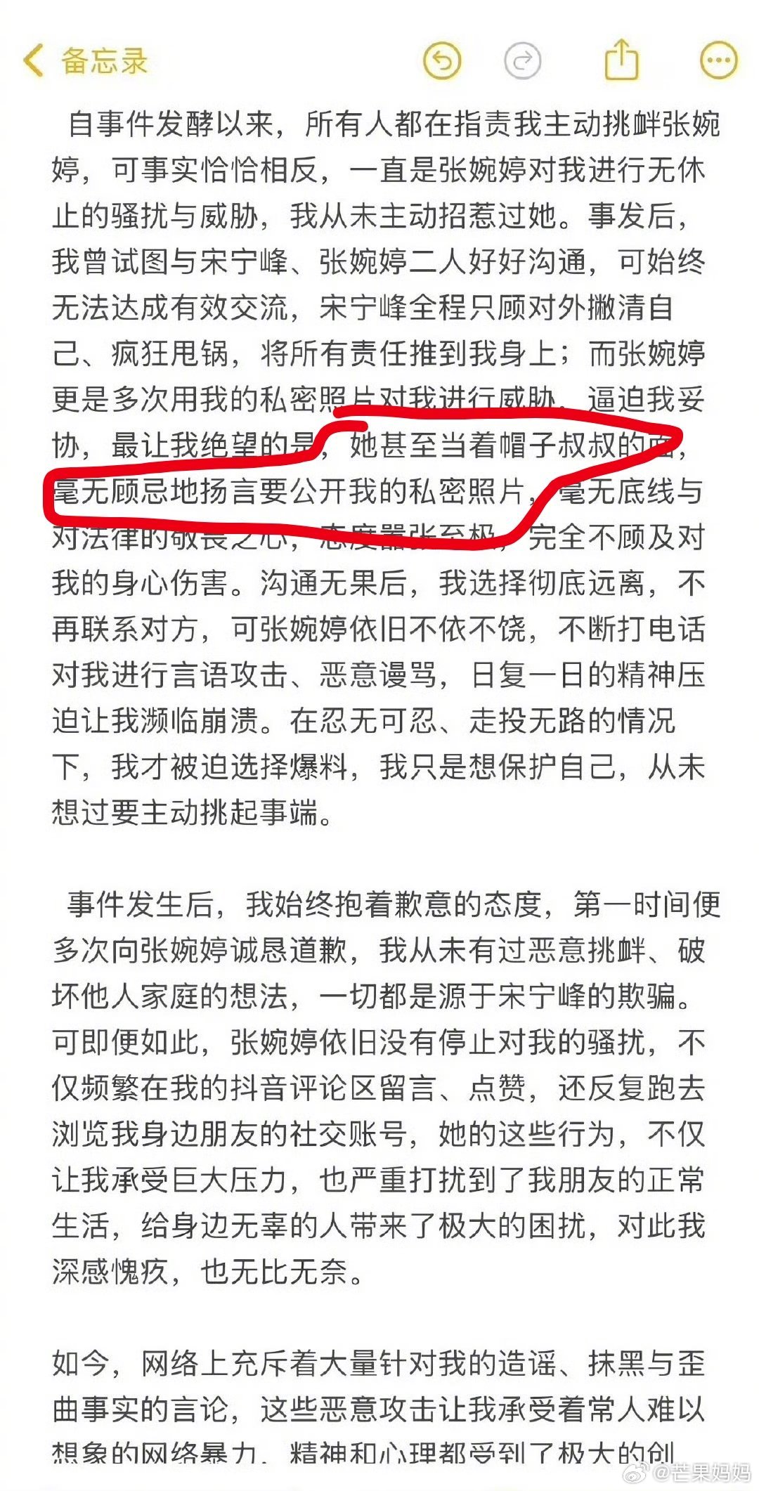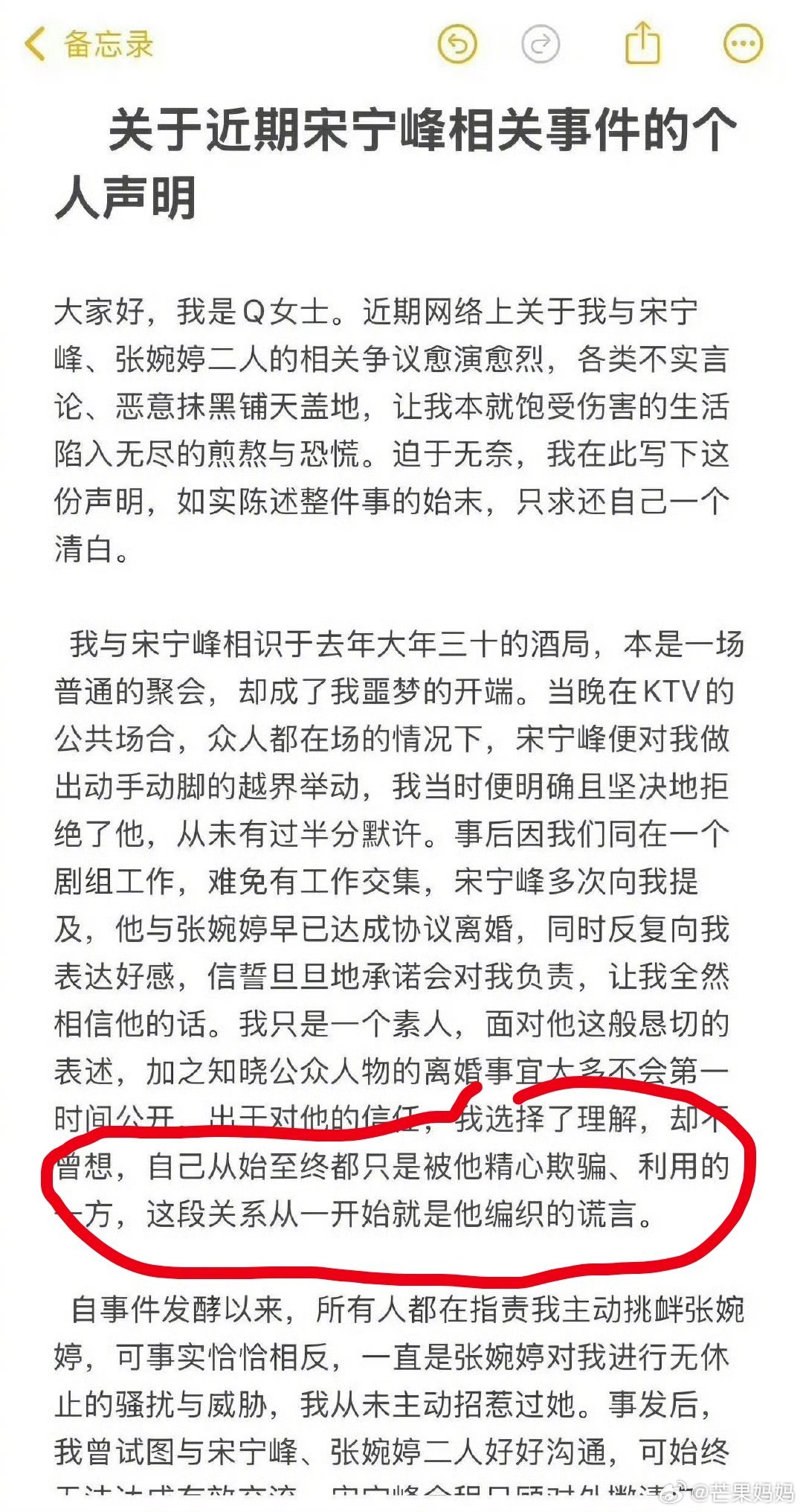 Q女士回应长文,被用私密照片做威胁。张婉婷曾经还在节目里说过宋宁峰像“大男孩”怎