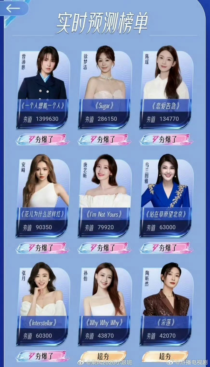 浪姐7全方位爆了《乘风2026》初舞台直播收官直接爆上热搜✨ 33位姐姐各显神通:专业唱跳稳得发光,跨界勇者不惧失误,甄嬛传姐妹同台戳中情怀!真实无修的舞台比完美剪辑更动人,热度一路狂飙,这季浪姐真的值得入股追更! 乘风热度乘风2026