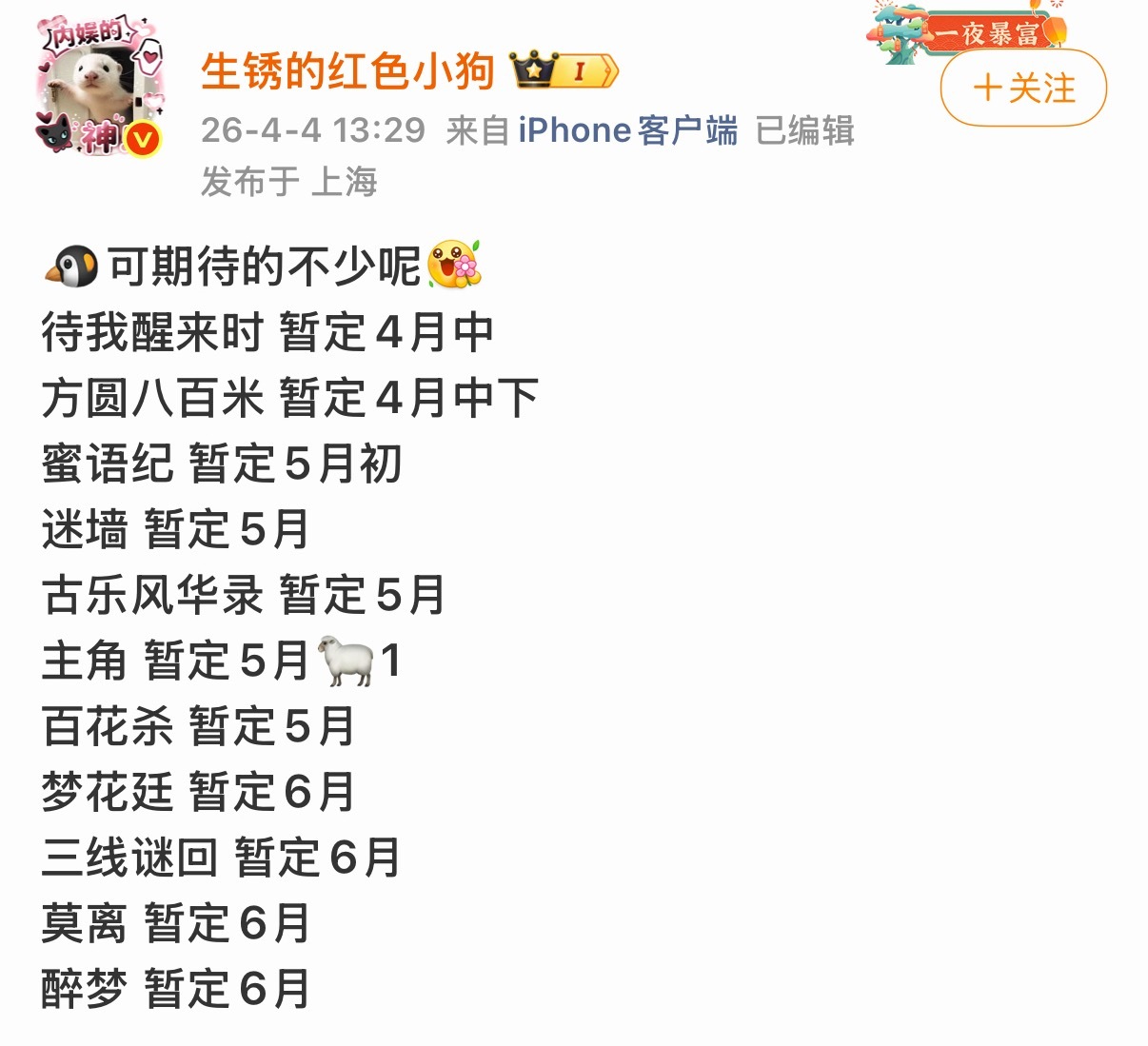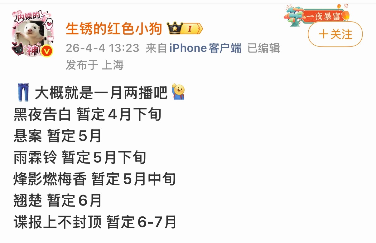 接二连三的有好多剧要上啊!我想看的有好几部! 你们有想看的嘛~