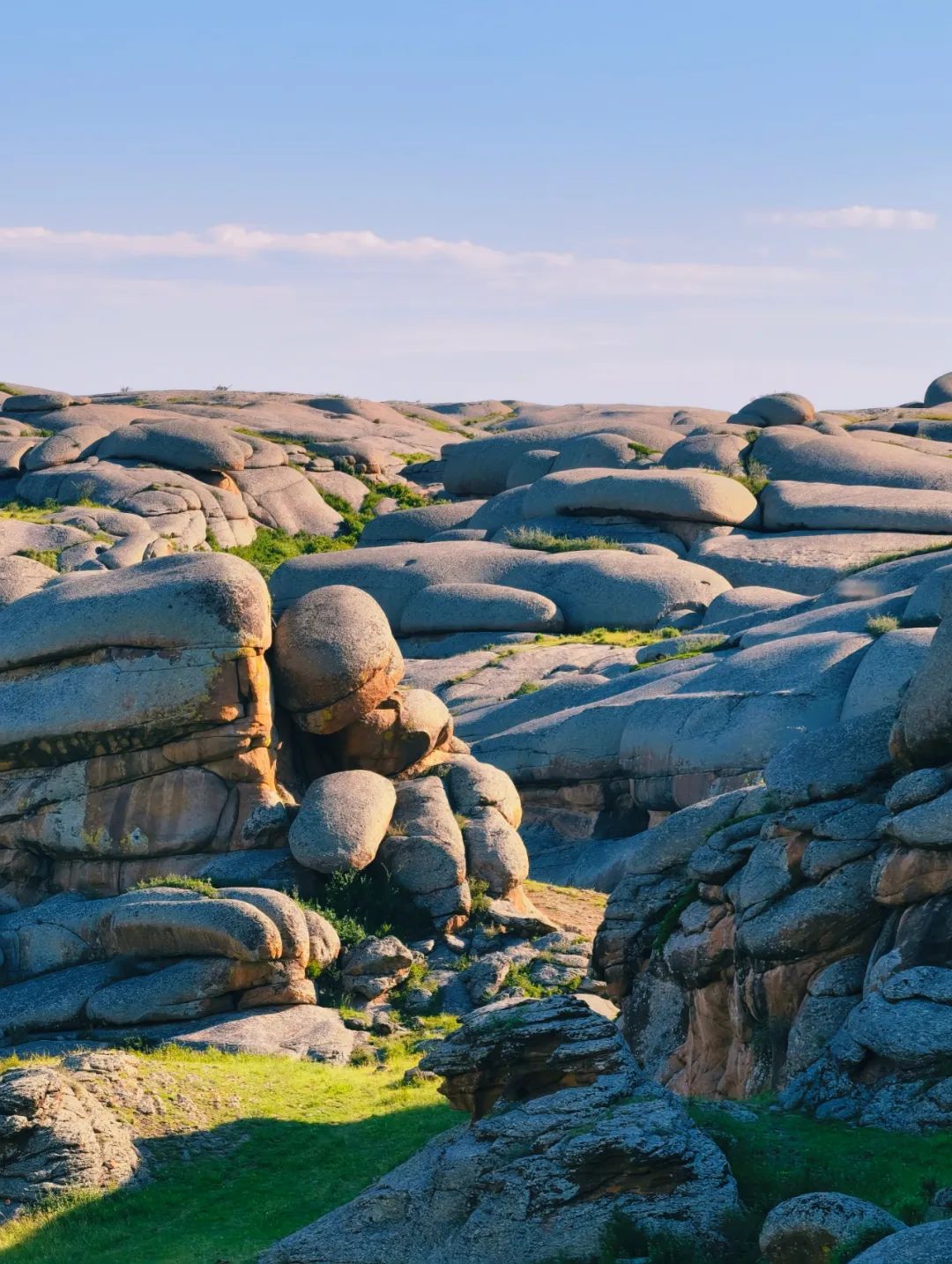 吉木乃草原石城距吉木乃县城45公里 ,属萨吾尔山下延山地草原,是萨吾尔山的冬牧场。景区内的花岗岩石蛋地貌由溶蚀和风蚀作用形成,堪称大自然的鬼斧神工。石蛋造型繁杂,有“恐龙石”“神鸡头”等,栩栩如生。更有“一线天”这样的惊险景观,狭窄的石缝仅容一人通过,抬头只见一线天空,充满刺激与新奇。
