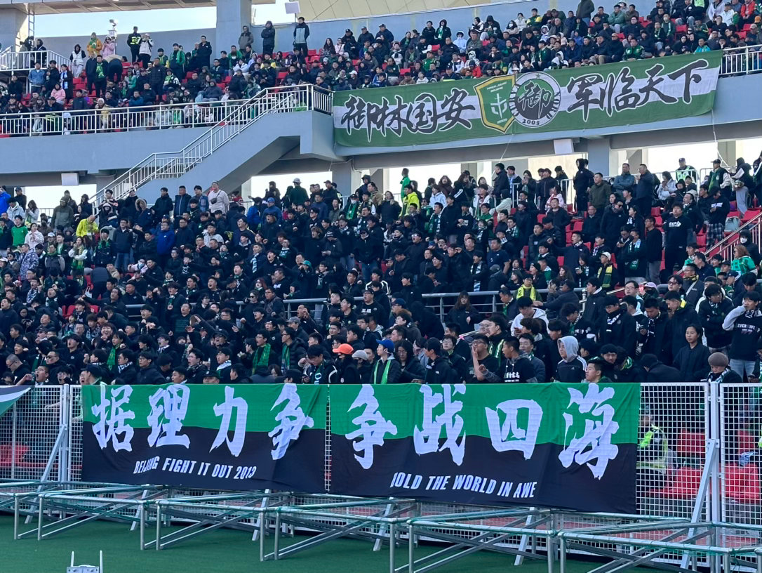 在铁西输球的北京国安队翻译突然拿着大喇叭对失望的球迷高喊“回到工体,XX成都!”
