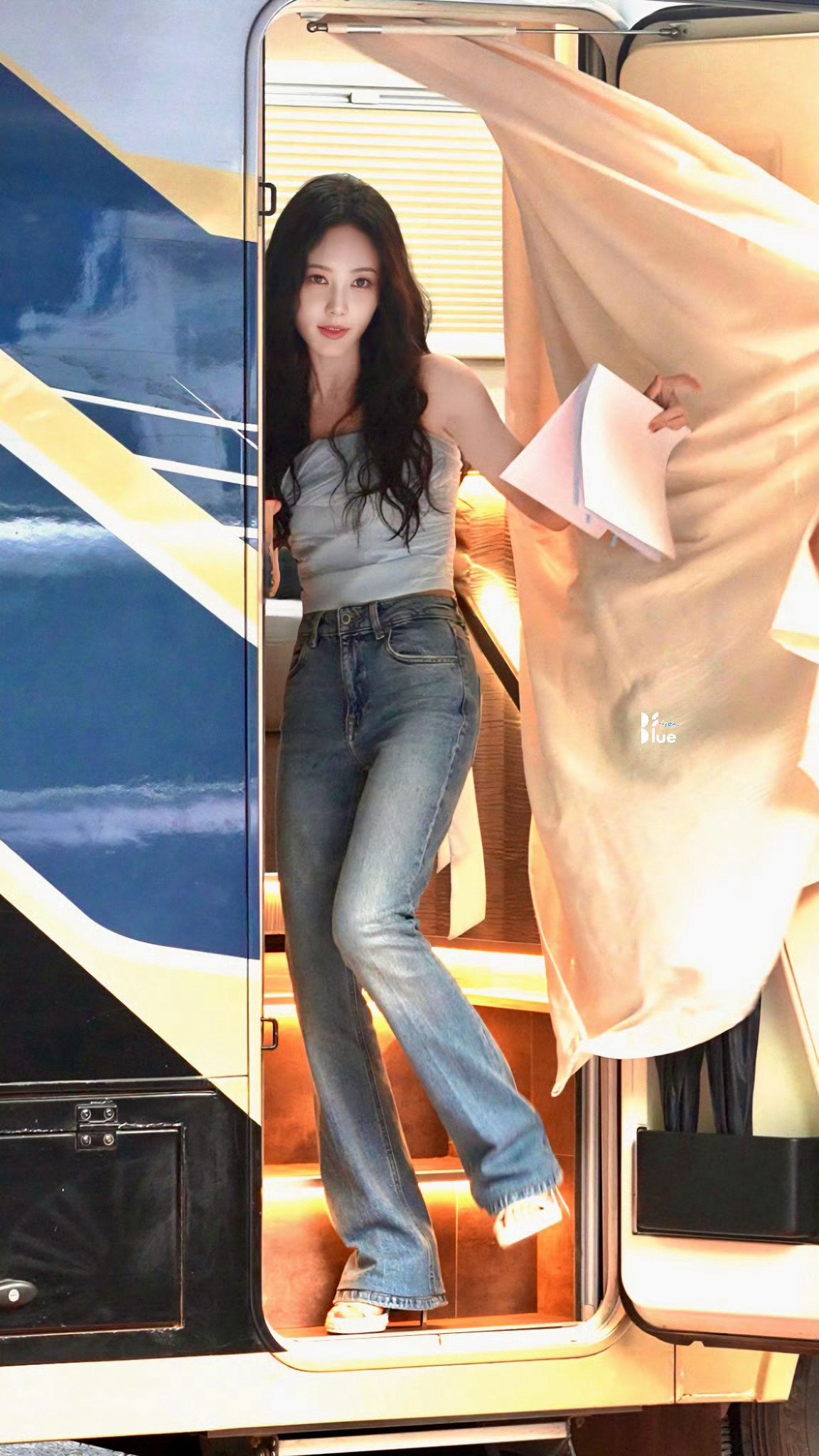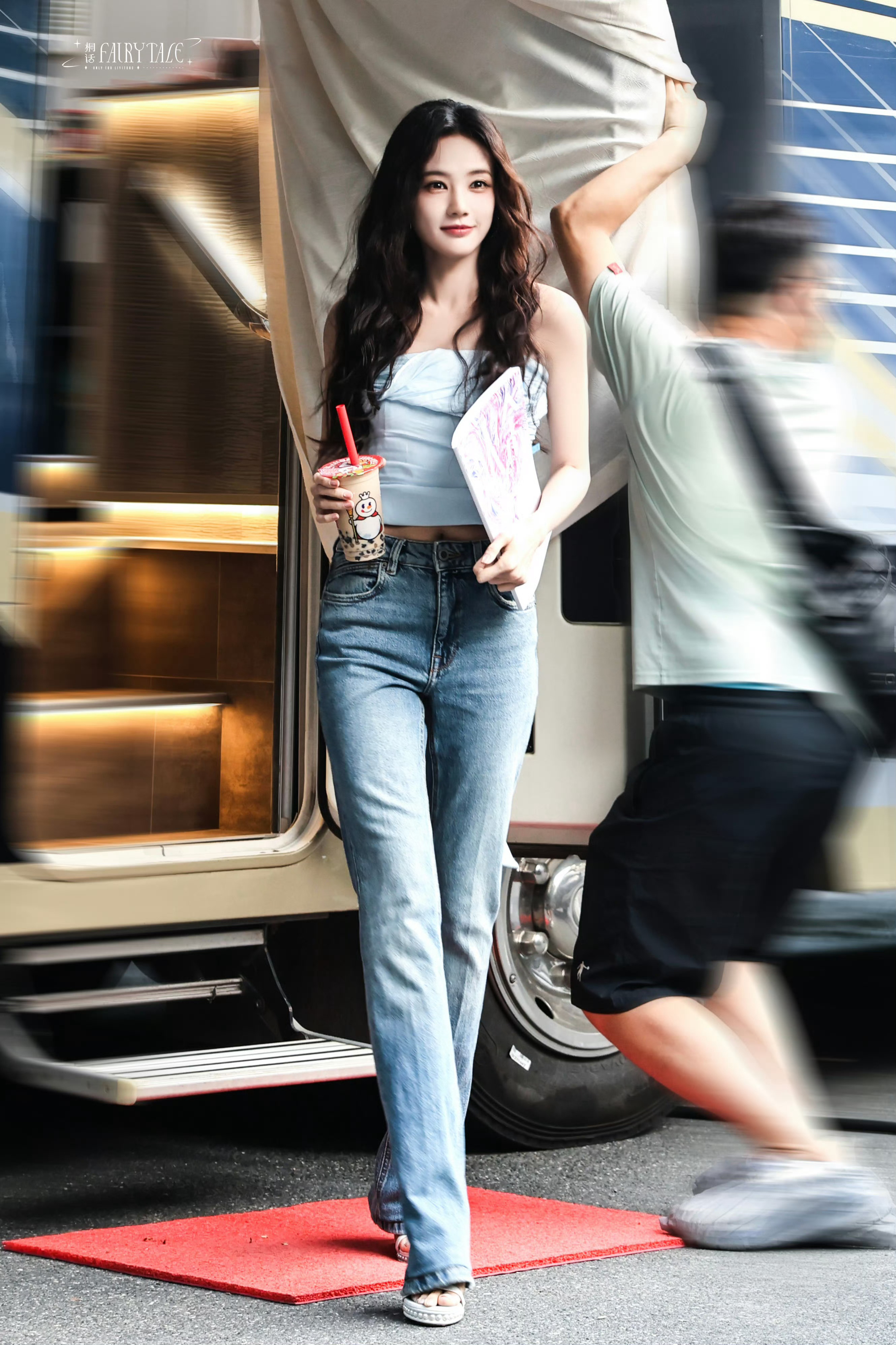 李一桐的狗狗会直播了李一桐一桐挂脖露背衫牛仔裤大长腿裸色一字带细高跟