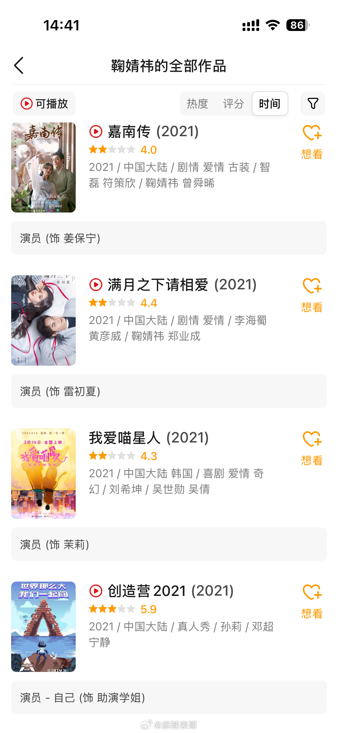 我看了一下,鞠婧祎的影视剧作品,基本上都是5分,不出意外的话,《月鳞绮纪》也会在