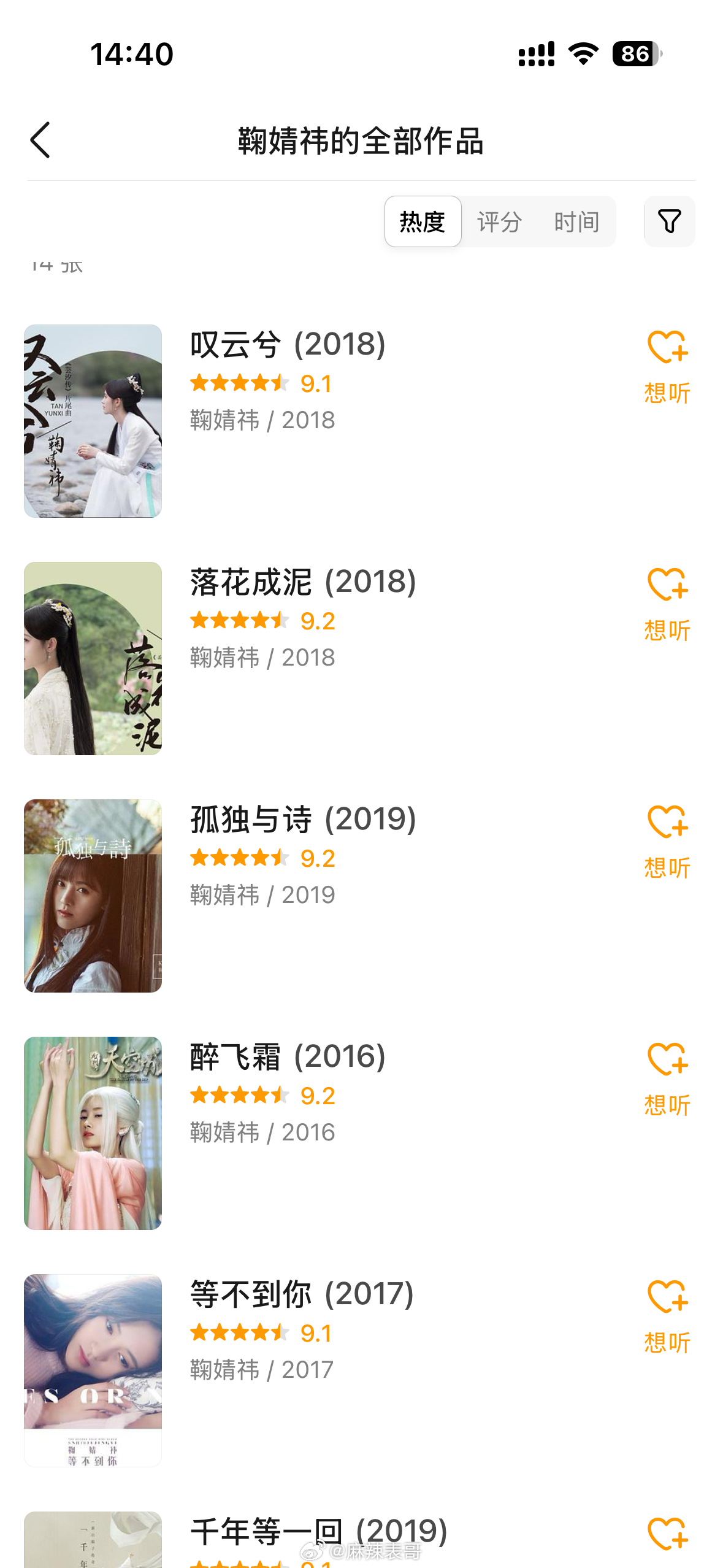 但,她的歌曲作品,基本上9分以上。