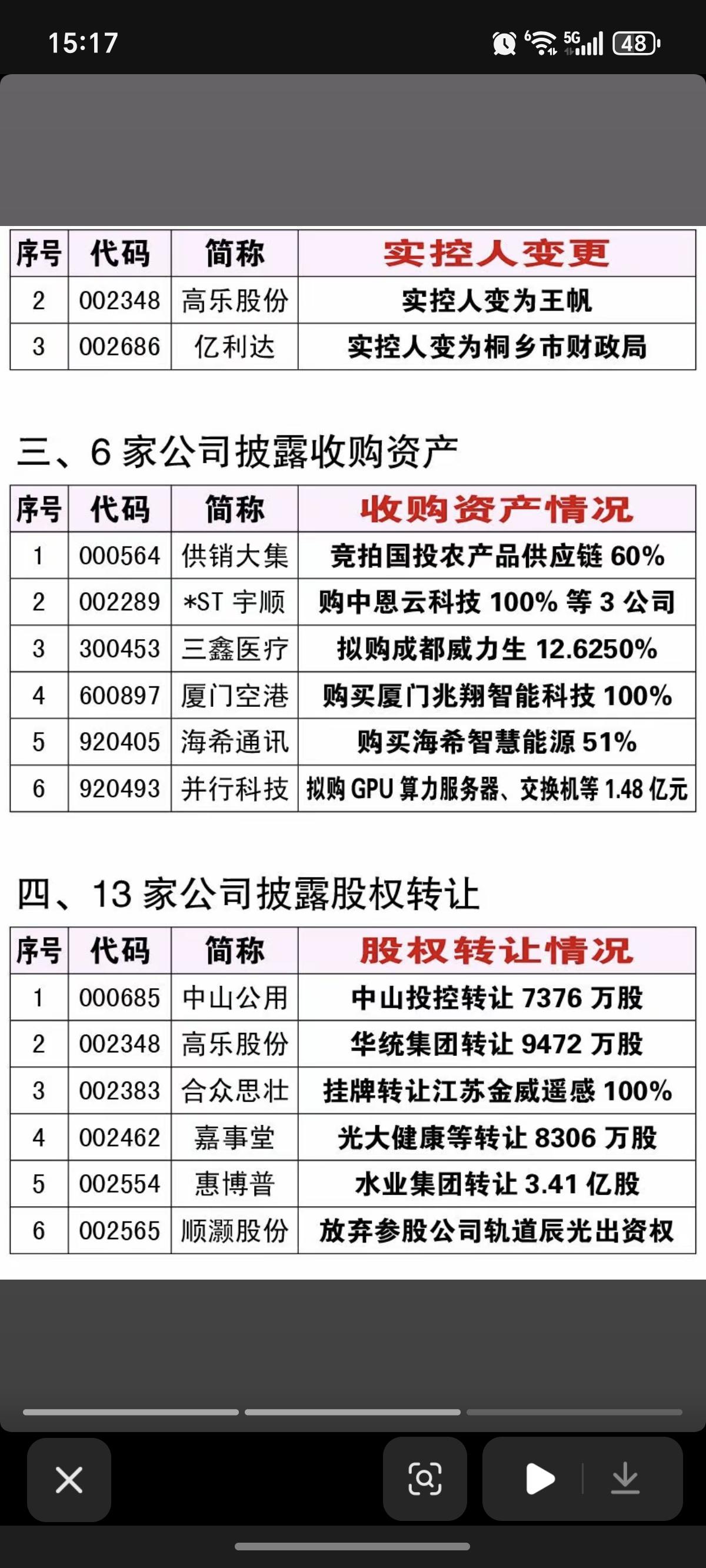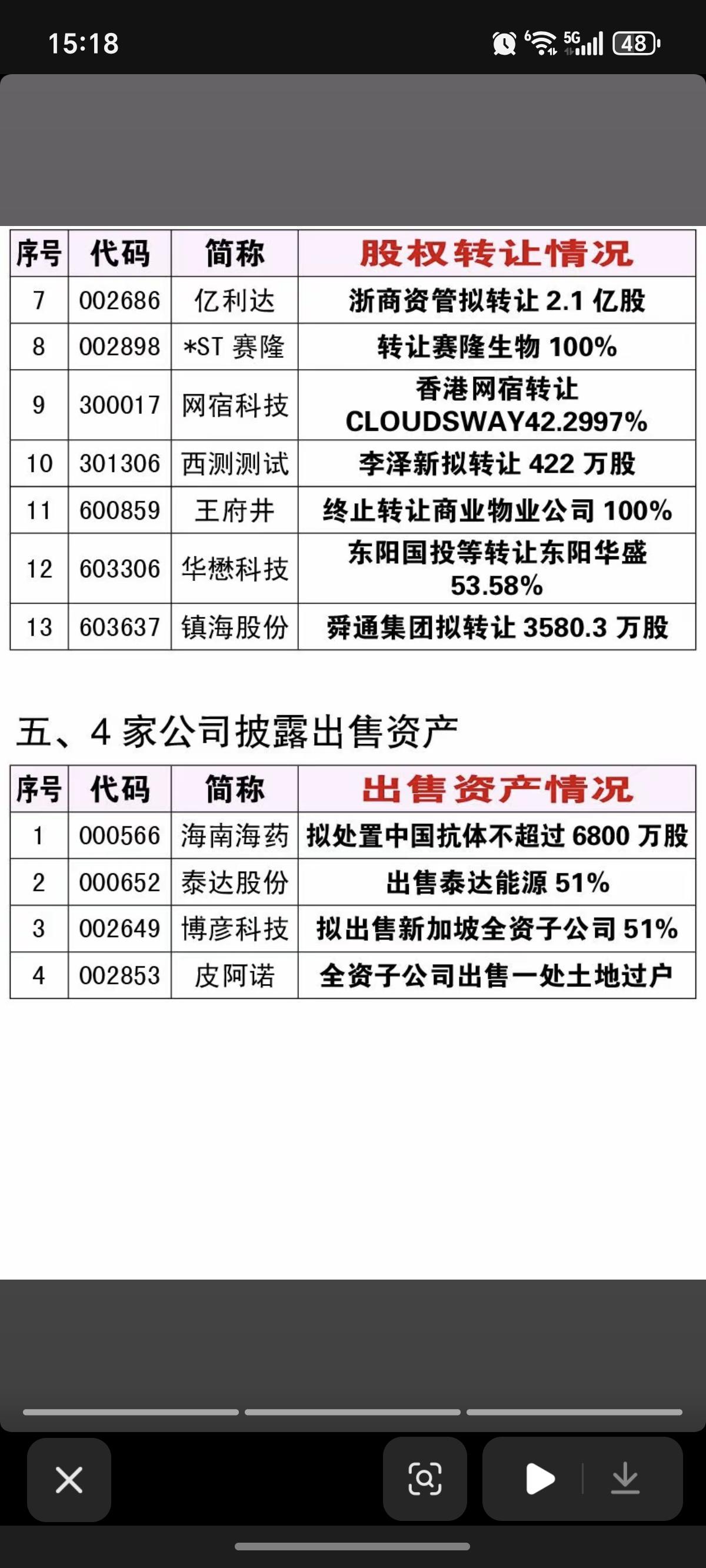 4.4周六 最新:资产重组、实控人变更、股权转让公告! 泰达股份、恩捷股份、英唐智控等资产重组事项 11家公司披露资产重组 3家公司实控人变更 6家公司披露收购资产 13家公司披露股权转让 4家公司出售资产