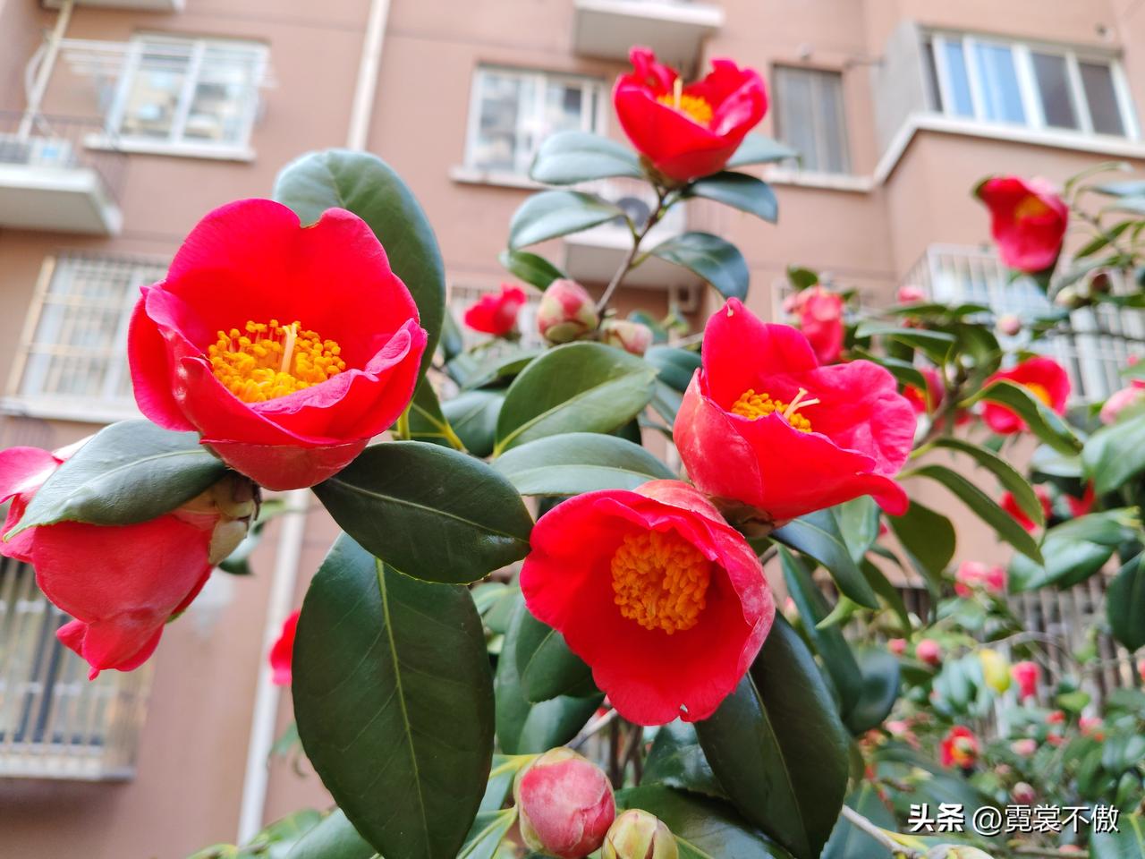 未下台阶一树花 春风扑面鸟喳喳 此花刚谢彼花开 处处都是水彩画