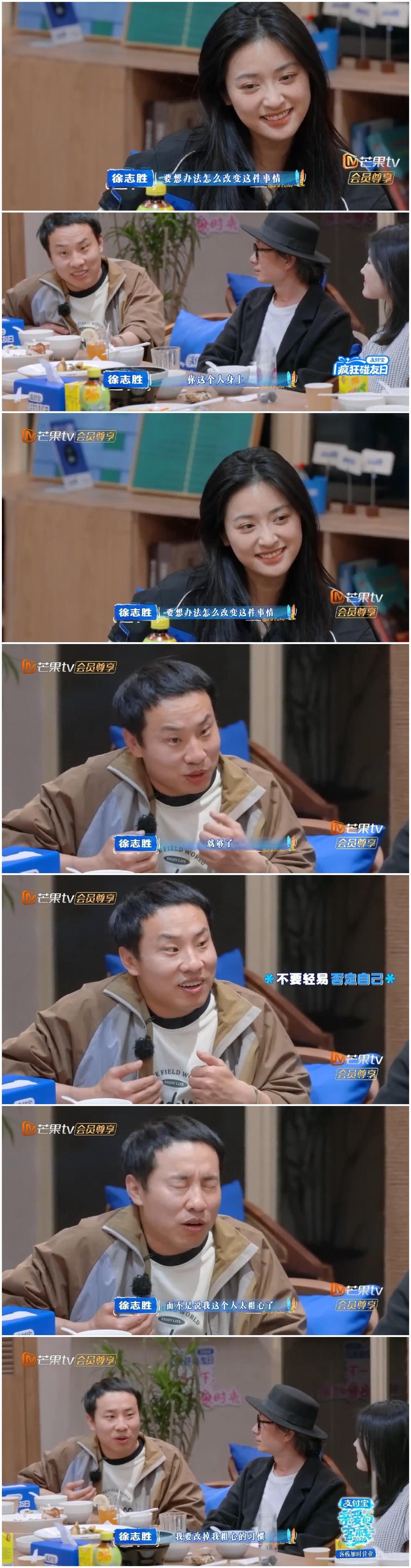 徐志胜与沈月聊天, 谈及焦虑, 他有自己的独特解决办法。 徐志胜强调自己作为喜剧人, 底色更多的是悲剧, 理由是作为喜剧人遇到不好的事件, 会储存起来, 作为演出的素材, 反复咀嚼。 就这样徐志胜会很容易焦虑。 徐志胜坦言自己有一个解决焦虑的秘籍 就是“对事不对人”。 就是这件事做错了, 告诉自己下次做好就行, 而不要上升为我这个人太粗心之类的, 就止步于这个事情。 是呀, 徐志胜就是学会放过自己, 专注于解决事情。 这样看来徐志胜是专注于深耕内心的人, 这也许就是爱读书的人的魅力吧