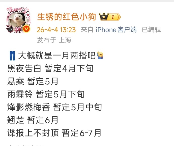 曝四大平台近期排播看来看去还是优酷的剧比较吸引我