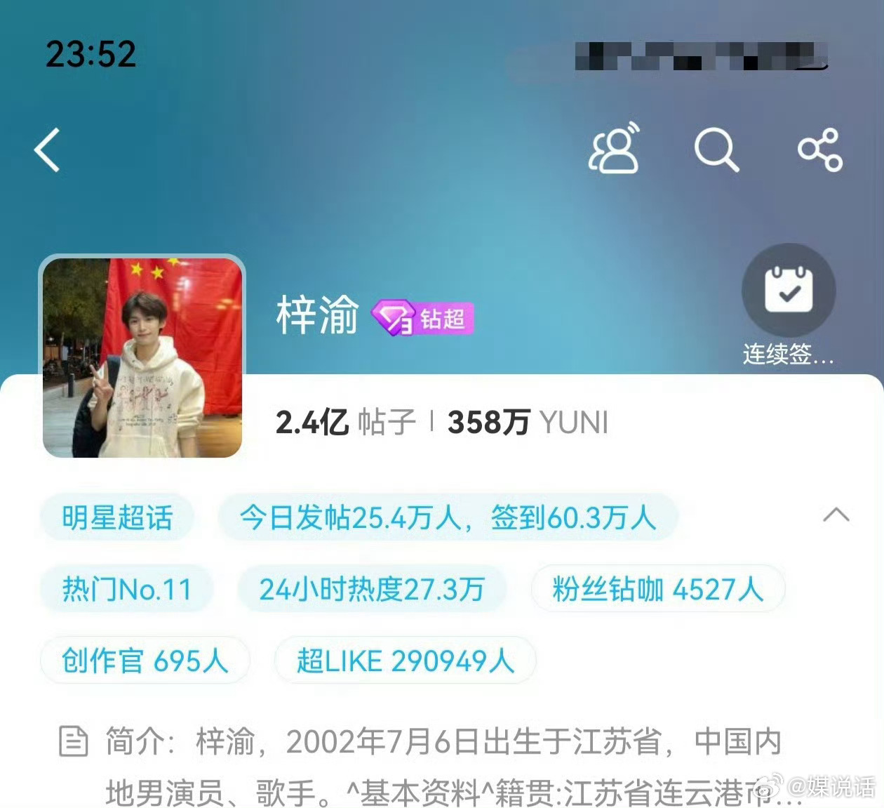 恭喜4.3梓渝超话拉表继续稳居内娱第一☝🏻超like达到29w+,签到数61w