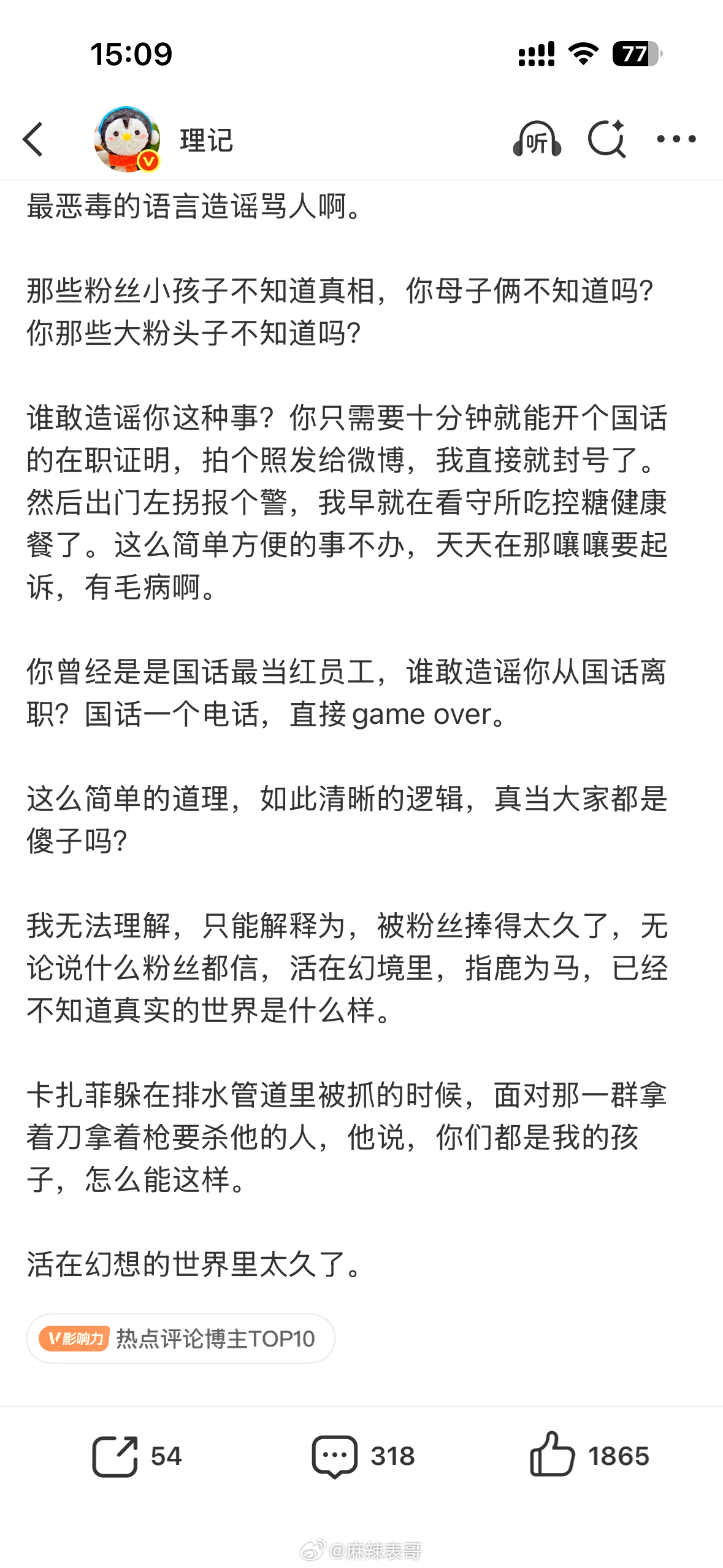 昨天张艺兴参加了中宣部的活动,粉丝又开始围剿理记,说他造谣,然后又被输出了。