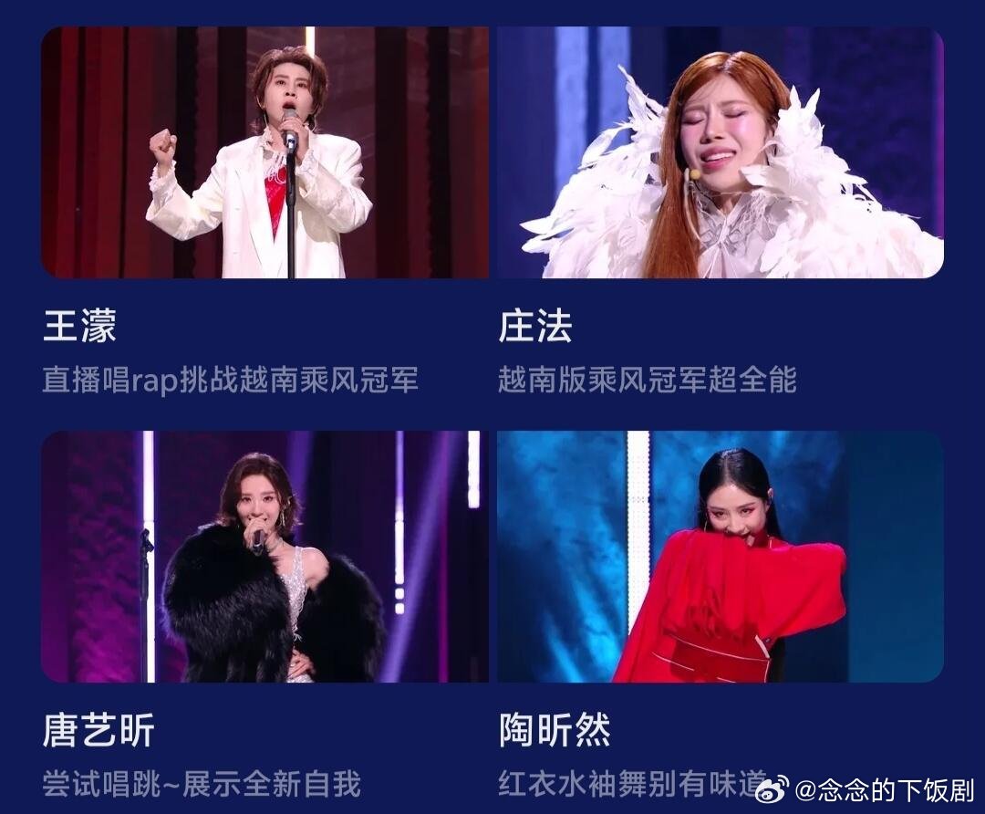 乘风2026初舞台第一场直播票数乌兰图雅《站在草原望北京》479☑️范玮琪《如果的事》 416孙怡《why why why》 477☑️江语晨《最后一页》358温峥嵘《剪》 433☑️代斯《IMMA GET IT》 324万千惠《暗香》448☑️赵子琪《危险派对》371阚清子《爱的代价》480☑️张艺上《爱丫爱丫》348王濛《我爱你中国 我的眼睛就是尺》379庄法《moonlight》 382☑️唐艺昕《I'm not yours 》421☑️陶昕然《采莲曲》 345黄灿灿《Say U Love Me》 393☑️何宣林《why oh why》332