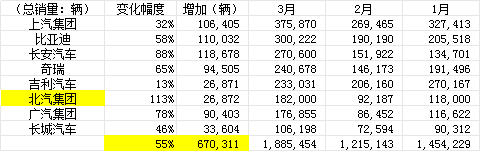 这不,今天就来了新消息,北汽集团正式披露了一季度的销量战报。