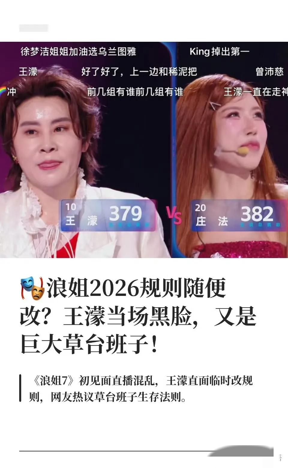 家人们快来吃瓜!4月3号深夜娱乐圈大瓜炸翻热搜,王濛直接黑脸挂脸,肉眼可见的不高兴,全是因为比赛规则被临时乱改,这操作真的太离谱了😤 咱先捋捋前因后果,王濛和越南选手庄法同台强强对决,俩人都拼尽全力,舞台表现超亮眼。本来早就定好的投票规则,每位评委手里10票,只能投给其中一个人,结果投票环节刚要开始,评委倪萍突然开口,说要改规则!直接把10票平分给两人,还打着“中越文化交流比票数重要”的旗号,关键是这事儿事先半毛钱没通知,完全是现场临时决定。 旁边徐梦桃都急了,好几次举手想把票投给王濛,结果主持人直接无视,王濛自己出声提醒,也压根没人理,主打一个强行改规则、强行压票。最后票数出来,王濛379票,庄法382票,俩人票数差一点点,可都没超400,比其他安全区的选手低了一大截,这比赛的公信力直接碎成渣了。 要知道王濛向来是直脾气,最讲究公平竞技,毕竟运动员出身,最看重规则和实力,突然被这么暗戳戳改规则,换谁能不生气啊!脸上的严肃藏都藏不住,全程没一点笑意,谁看了都知道她是真的不满。 网友们也都炸锅了,纷纷吐槽这操作太双标,好好的比赛搞成人情世故,说好的公平竞技全没了,濛姐这波黑脸真的太能共情了,凭啥实力比拼要被所谓的“文化交流”绑架啊,太委屈了!浪姐7 浪姐7名场面 王濛 王濛当嘴替吐槽“浪姐太墨迹”