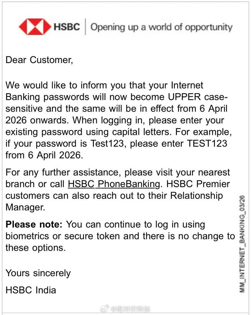 神奇印度:印度汇丰银行通知所有客户,他们的密码已经被强行把所有字母改为大写密码的哈希值问题直接找了个对应的新闻解释见图2。由印度汇丰银行的通知来看,必定是没有遵守密码存储的安全标准。自作聪明的传统技能又发挥了一次。密码专家对密码设置的建议见图3。