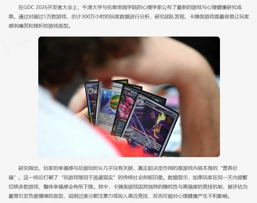 炉石传说 牛津大学心理学家研究发现:卡牌游戏是最让人感到痛苦和挫折的游戏类型!几乎所有游戏种类不论正负标准差,都可以让人获得正向的幸福感。只有卡牌游戏,不仅不能让人感到幸福,甚至比起其他游戏让玩家异常地感受到痛苦。是这样吗?