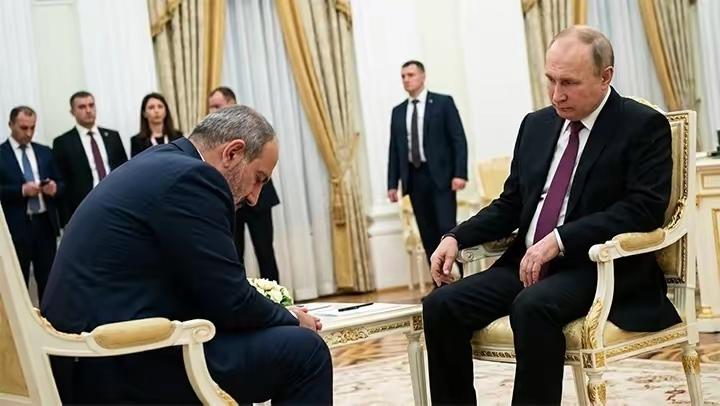亚美尼亚的总理与普京交谈。很明显,对方是矛盾又伤感。一方面,俄罗斯经济实力有限,给不了亚美尼亚想要的设备和技术,还有迷人的财富。另一方面,双方又是传统的政治伙伴。有着深厚的历史渊源!何去何从?作何选择?一直是非常艰难的一件事情。一方面,想要和西方人亲近,发展自己的经济。另一方面,又和庞大的俄罗斯有着千丝万缕的牵连。想脱又脱不开,想走又走不了。 亚美尼亚的局面,其实是俄罗斯所有盟国的困境。自己想要的,俄罗斯给不了。自己想撇的,撇不开?毕竟,美国人和欧洲人也是有条件的,谁也不会无缘无故的对你好。所以就稀里糊涂的,脚踩两只船了。
