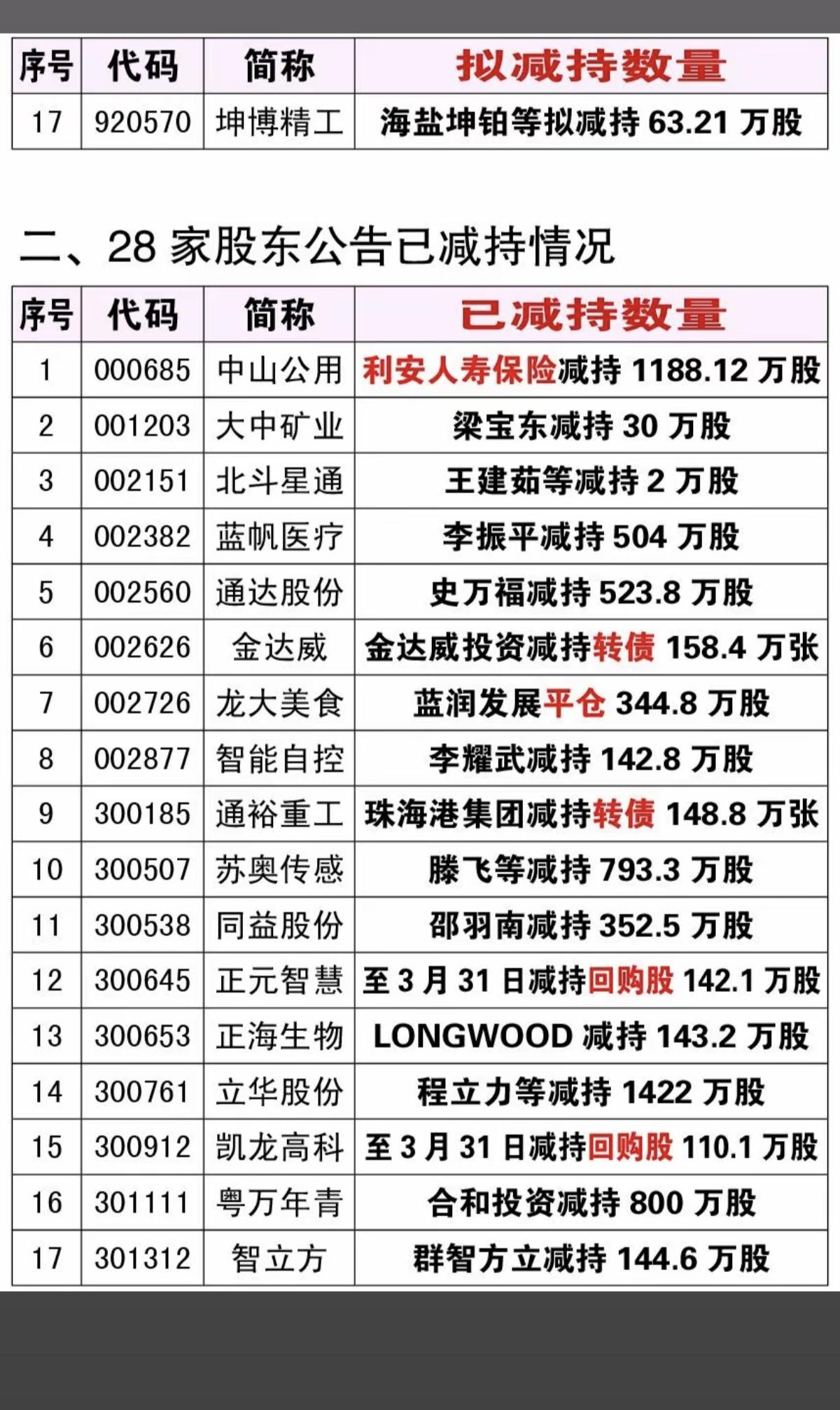28家公司公告减持进度