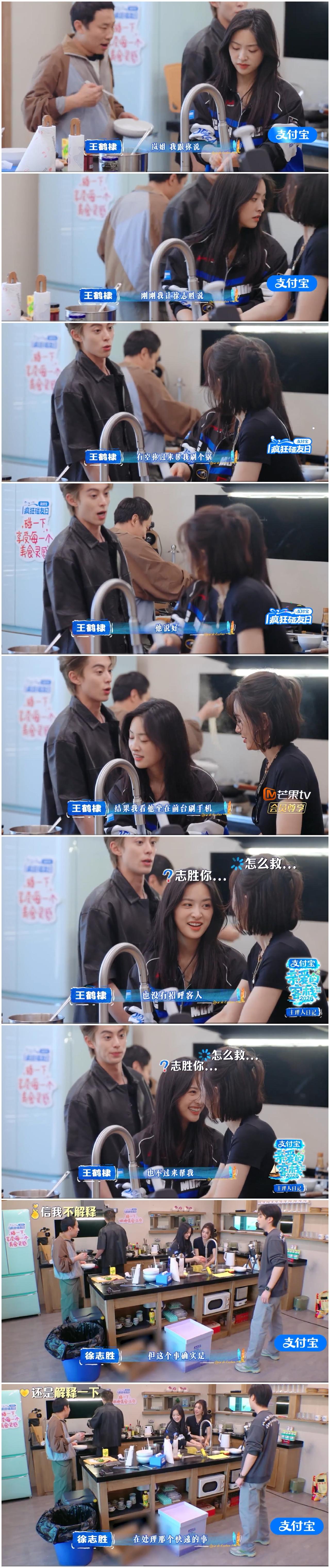 王鹤棣向秦岚抱怨, 徐志胜原本答应帮忙, 结果王鹤棣发现他在前台“玩手机”。 徐志胜承诺会帮忙王鹤棣 清洗厨具, 王鹤棣在忙得不可开交, 盼望着徐志胜来帮忙。 结果王鹤棣空等了很久, 徐志胜都没有来。 等王鹤棣忙完所有事情, 结果发现徐志胜在客厅刷手机。 于是王鹤棣生气的头也不回的走了。 当秦岚在厨房用餐时, 王鹤棣向秦岚抱怨起来。 徐志胜赶快解释, 他发现退房客人的大衣遗留在前台, 他拿手机是在忙着联系快递给客人寄回去。 哎呀, 幸好徐志胜有“嘴”, 不然就像李雪琴那样被误会了。 李雪琴当时录制综艺, 在拿着手机商量晚上节目具体惊喜事宜, 不可过于张扬, 但是被镜头拍下来, 却变成了偷懒玩手机。 徐志胜这样一说, 才逃过被误会的一劫。