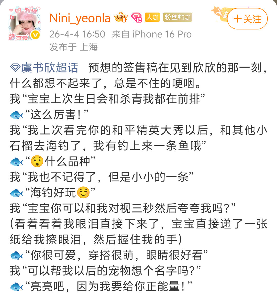天呐这个鱼头星星怎么这么会回应粉丝虞书欣签售会说大家都不准哭虞书欣签售会对粉丝说的话
