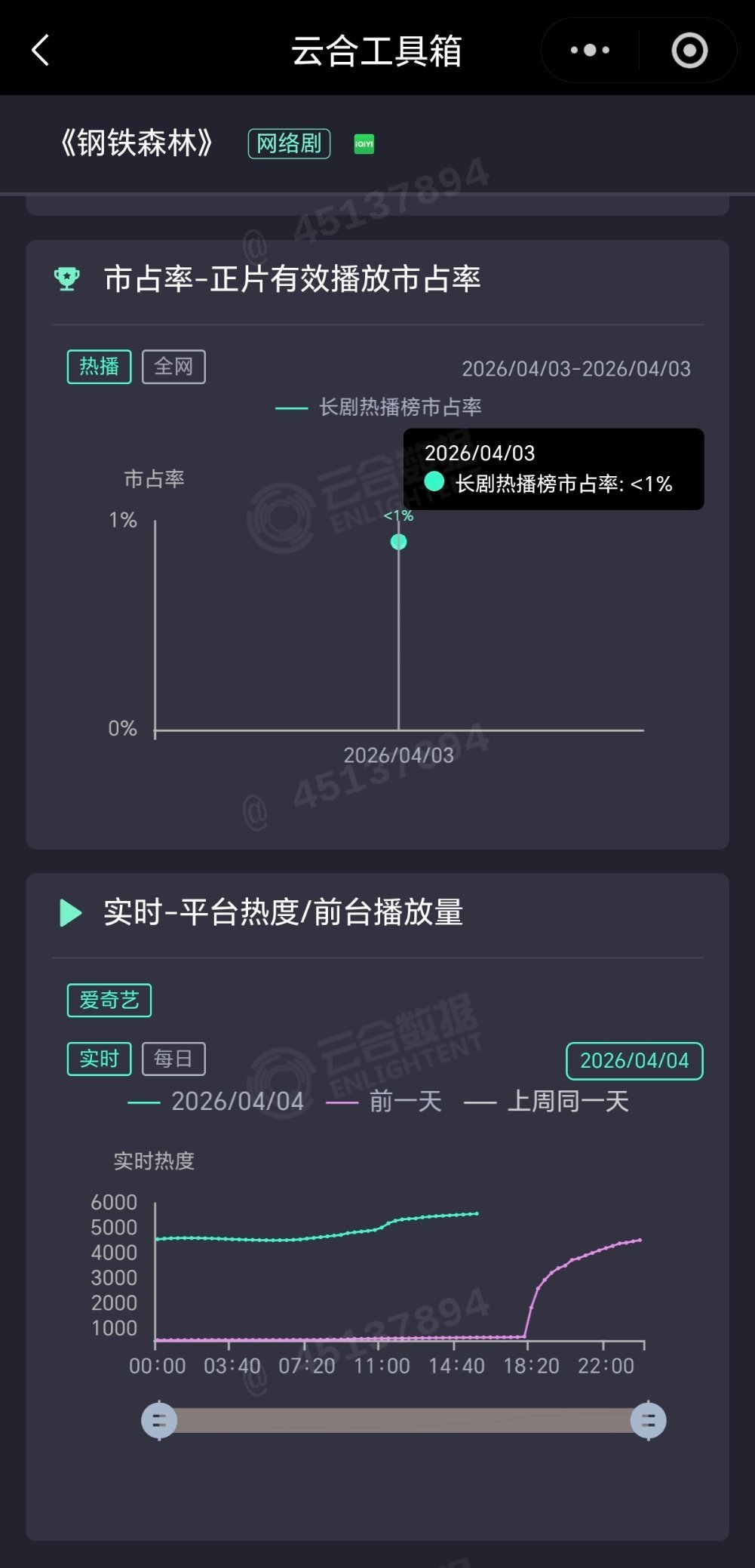 钢铁森林首日热度4547 云合0.9%200左右 酷云180+ ,天崩开局大小都算有讨论度的ip被选角拖垮成这样