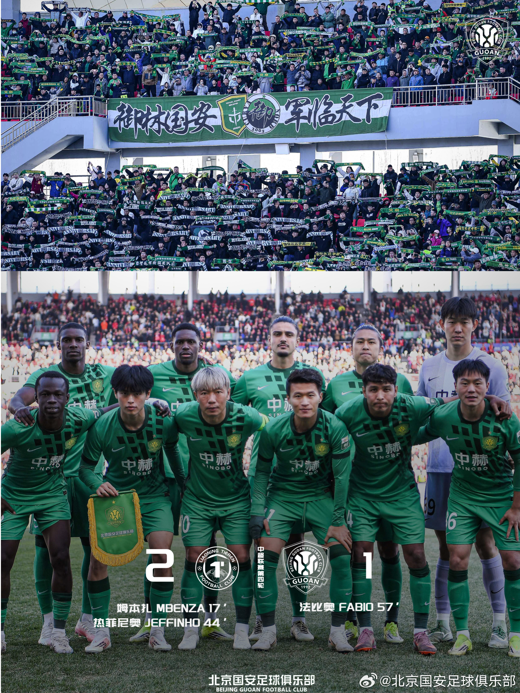 4月4日,2026怡宝中超联赛第4轮进行,北京国安客场1-2负于辽宁铁人楠波湾。