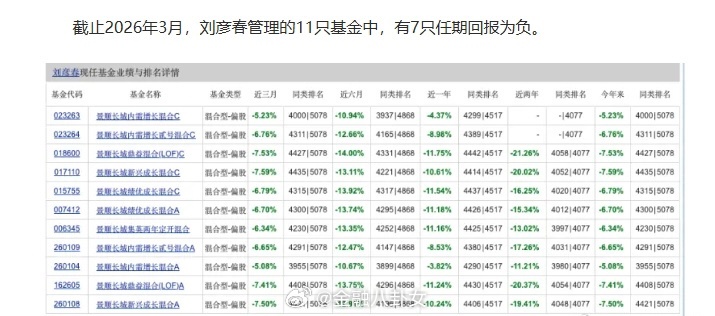 景顺长城刘彦春最新年报又亏惨了!三年亏超300亿、管理费照收2.3亿