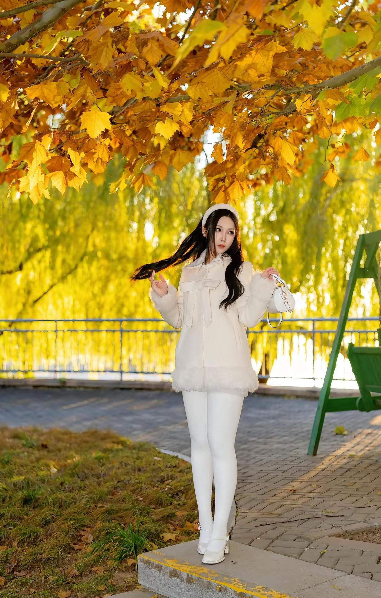 冬天穿纯白真的太出片了!一身纯白赴冬,温柔到心动我们的可颂时刻 清冷感美女