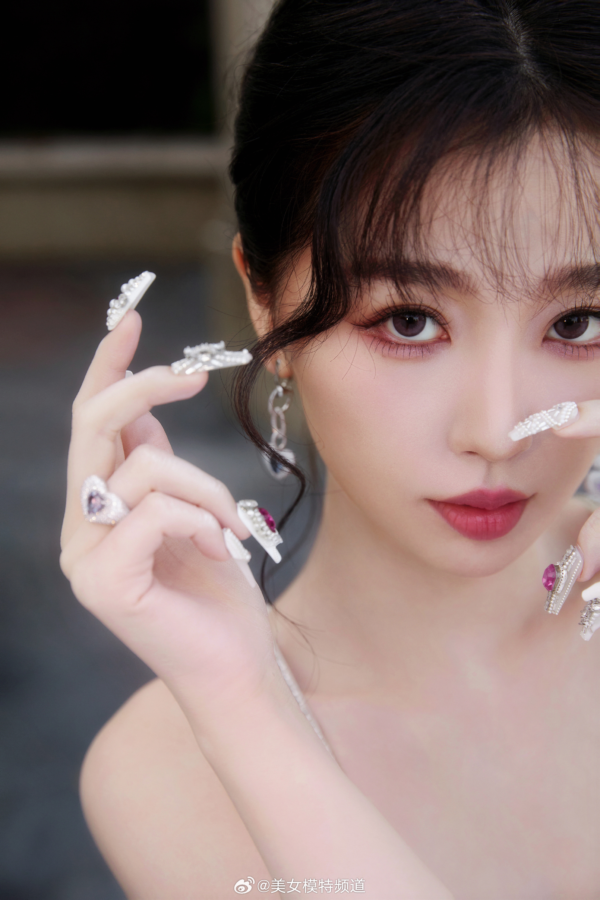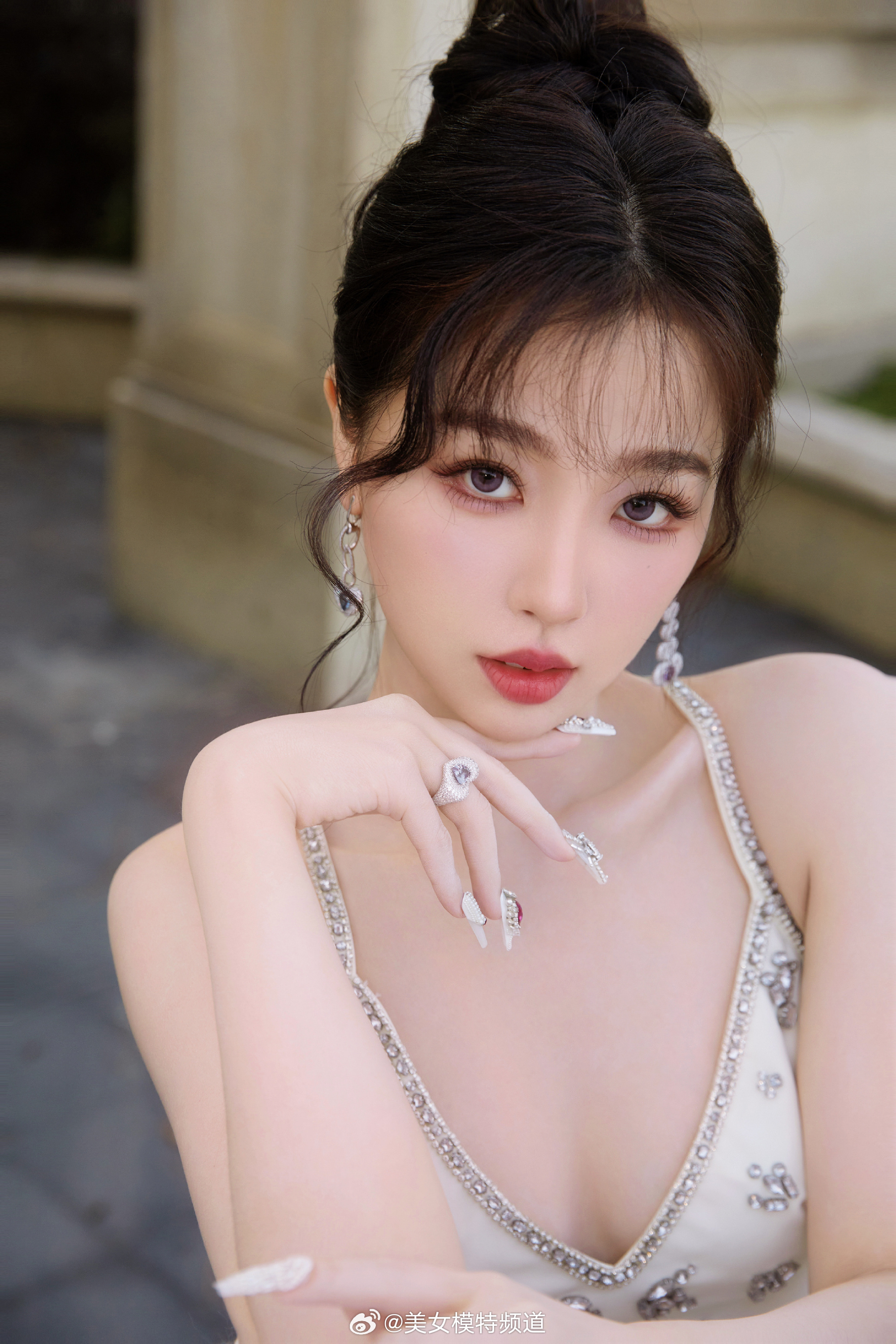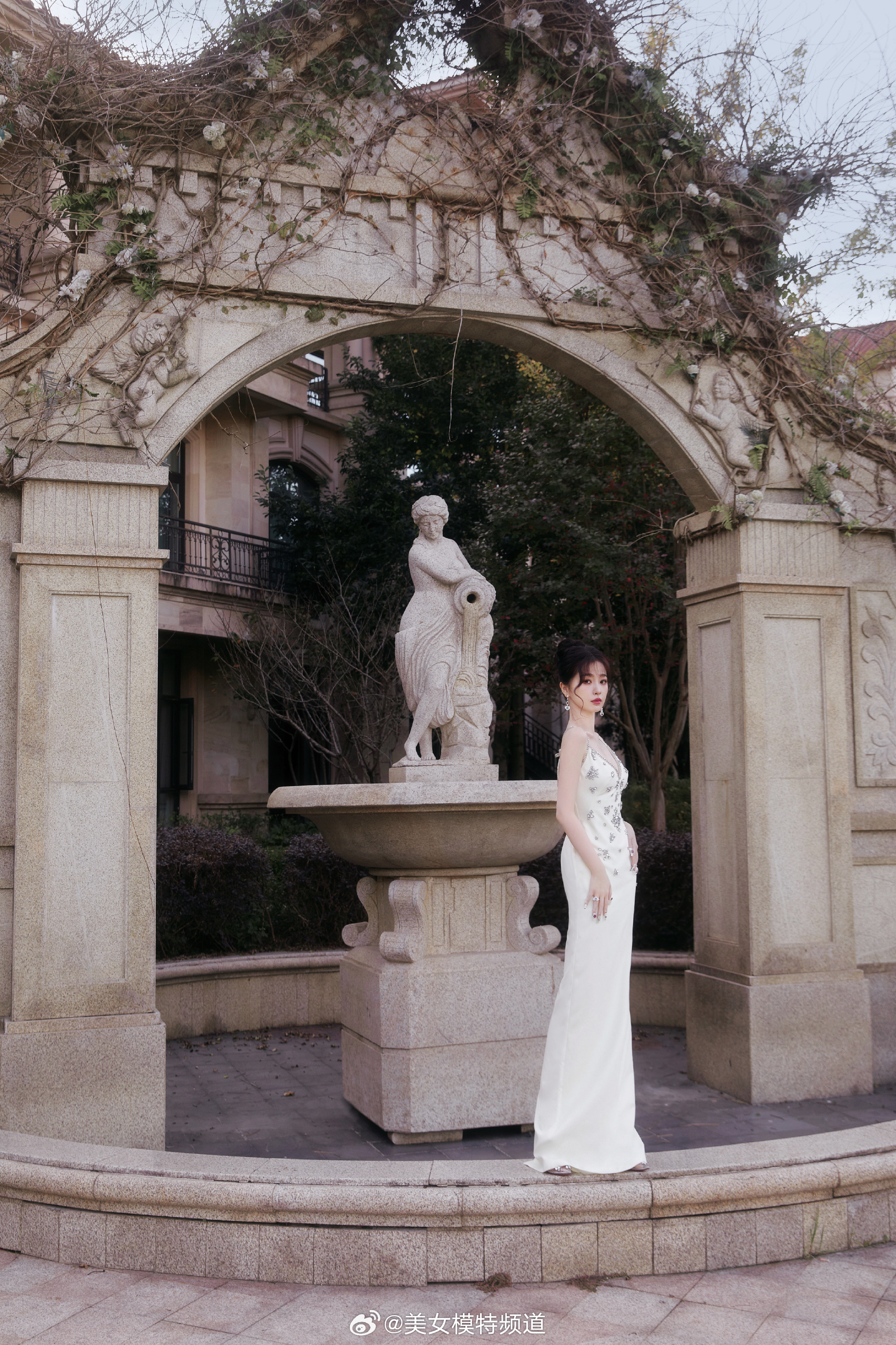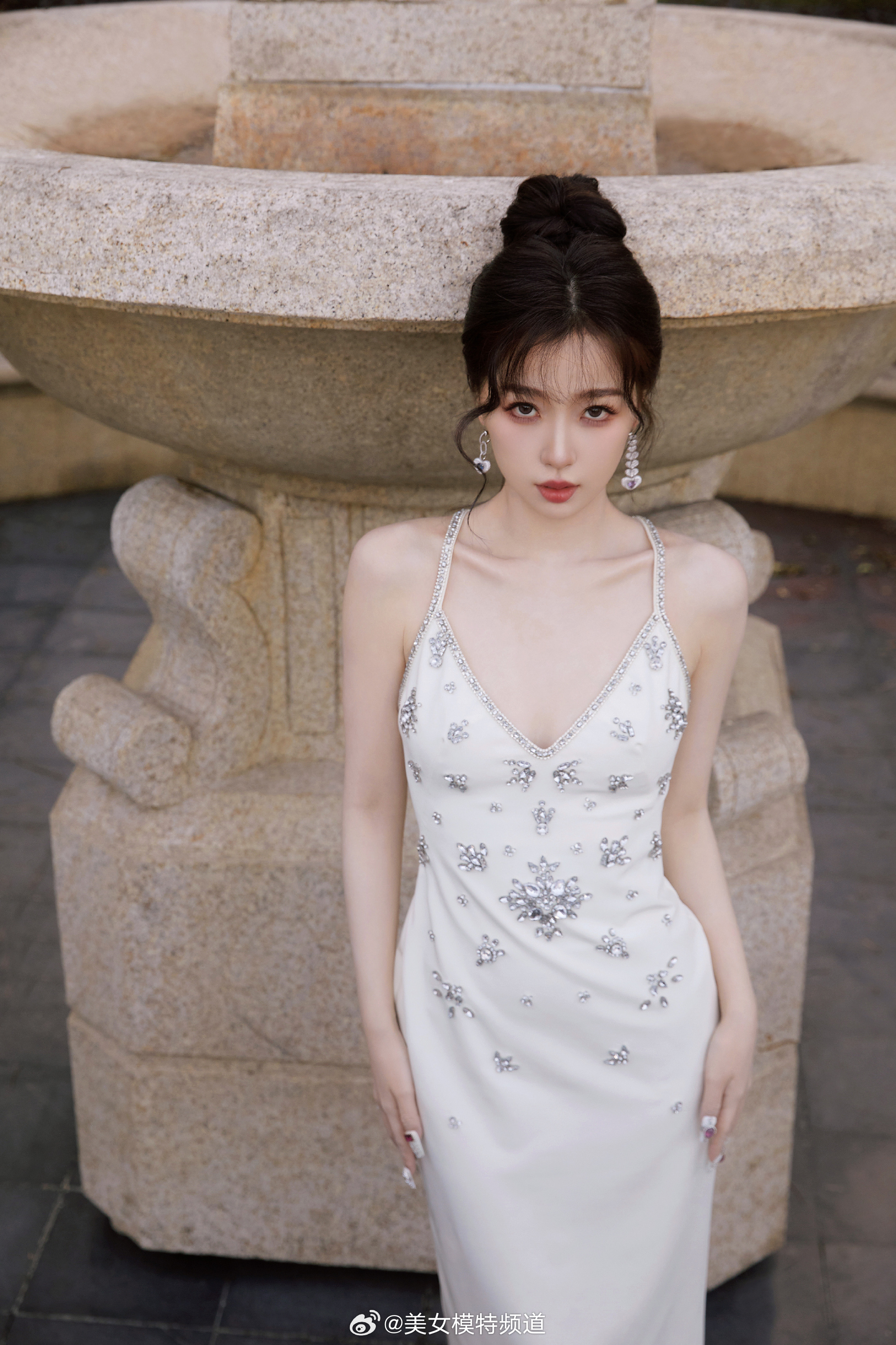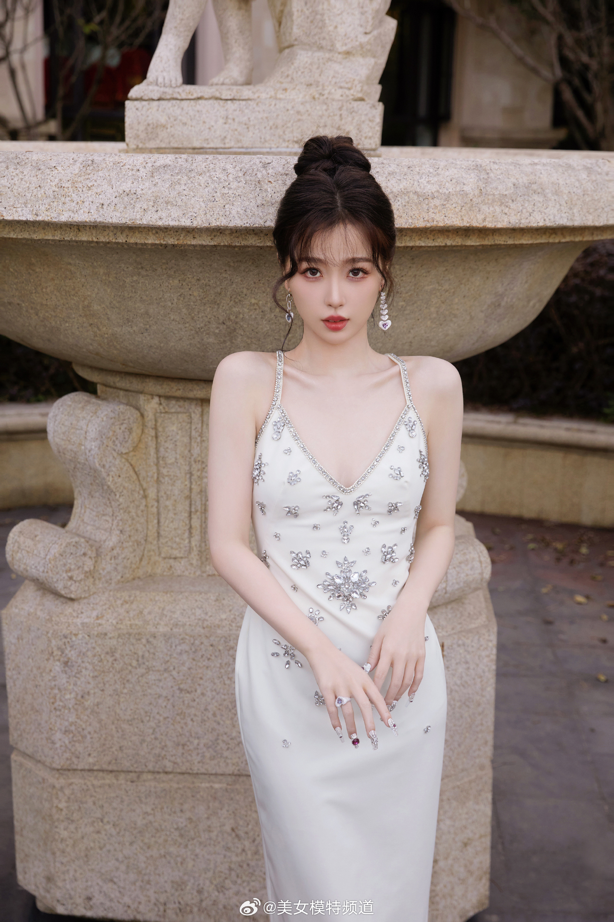 一袭长裙的御姐型美女,那气场简直绝了。就说穿搭,黑色丝绒包臀紧身长裙配黑色缎面吊