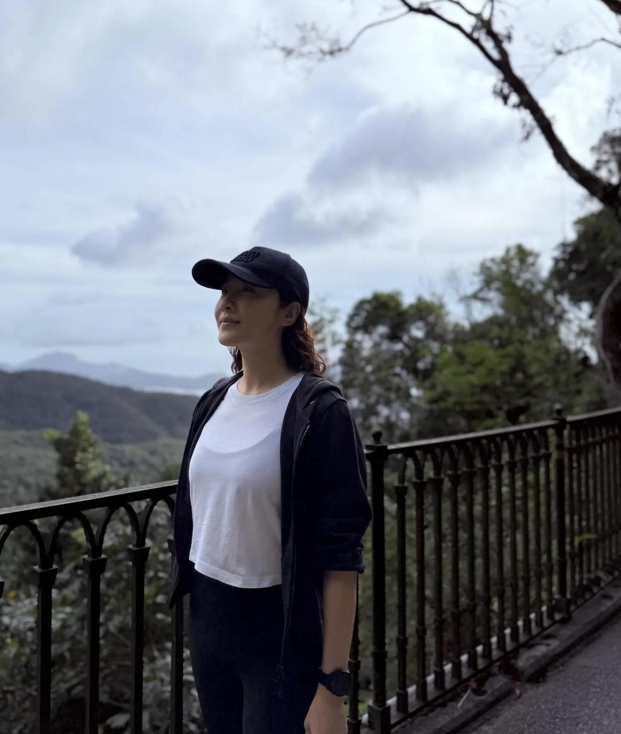 黎姿才是冻龄女神天花板! 简单运动穿搭,50+状态比年轻人还能打! 登山随拍笑容