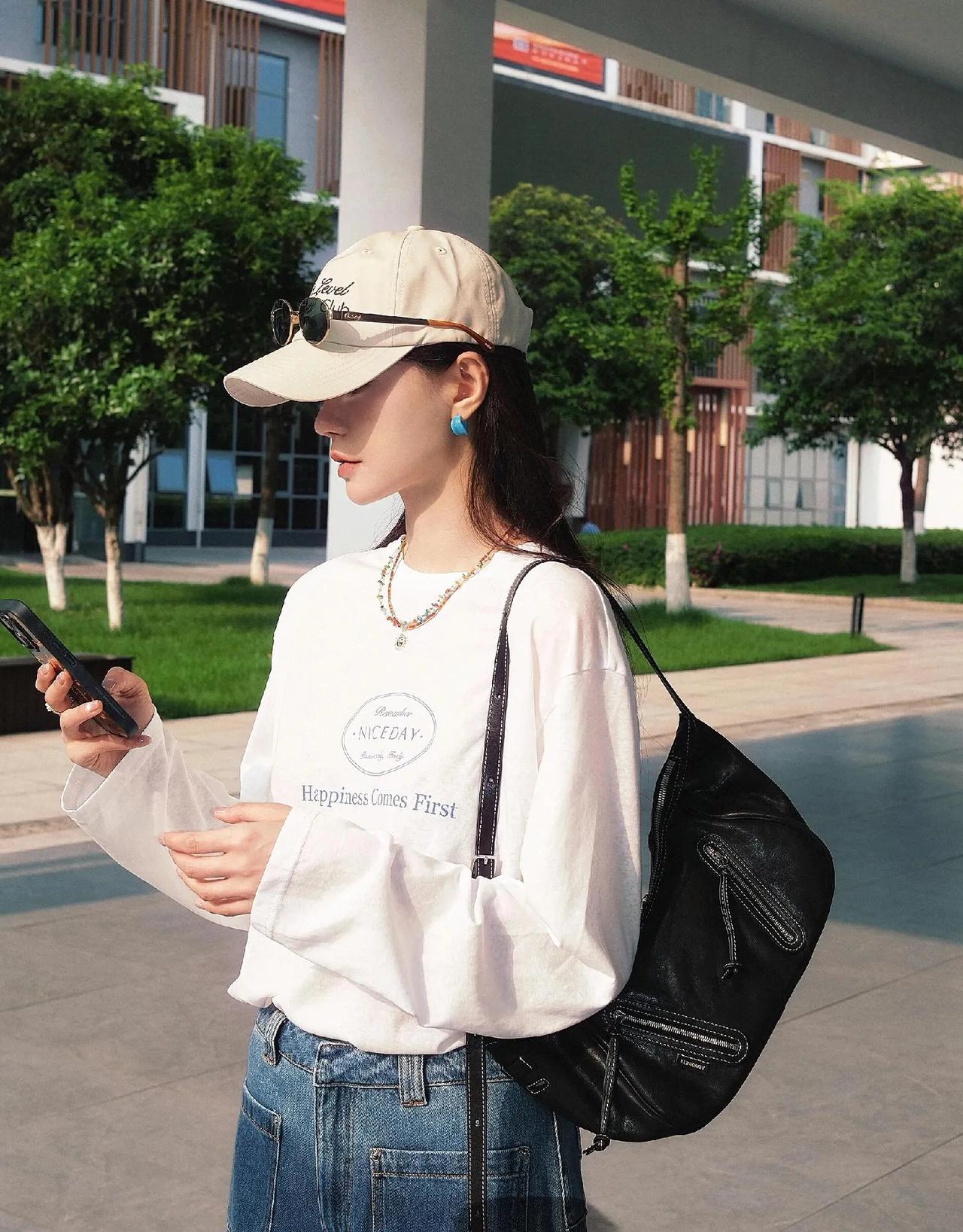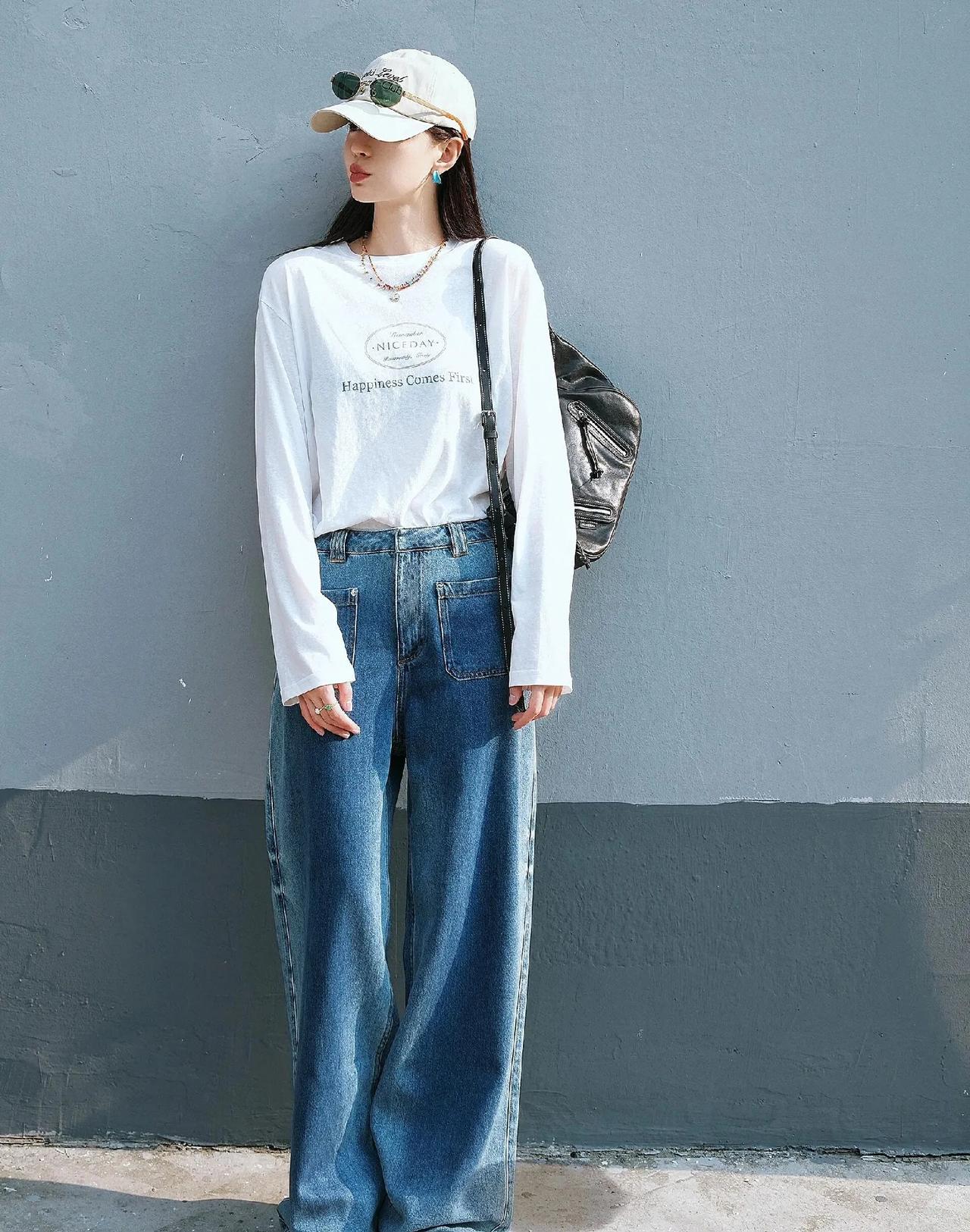 沈梦辰才是基础款穿搭天花板! 白T+阔腿牛仔裤,简单两件套直接穿出时髦感,休闲又